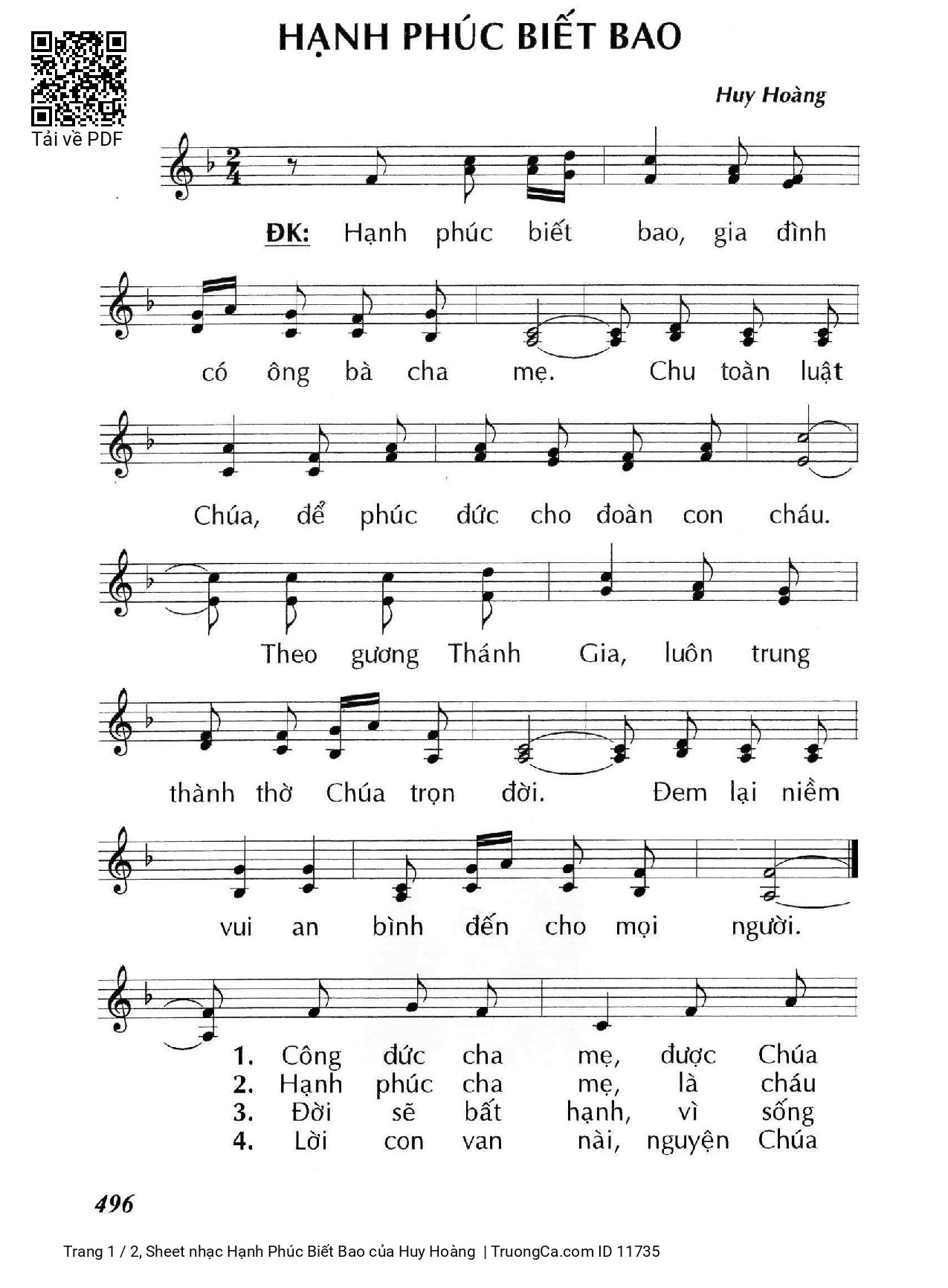 Huy Hoàng Hạnh phúc biết bao gia đình có ông bà cha mẹ [PDF] [Sheet] [Lyrics] [Mp4/Midi]