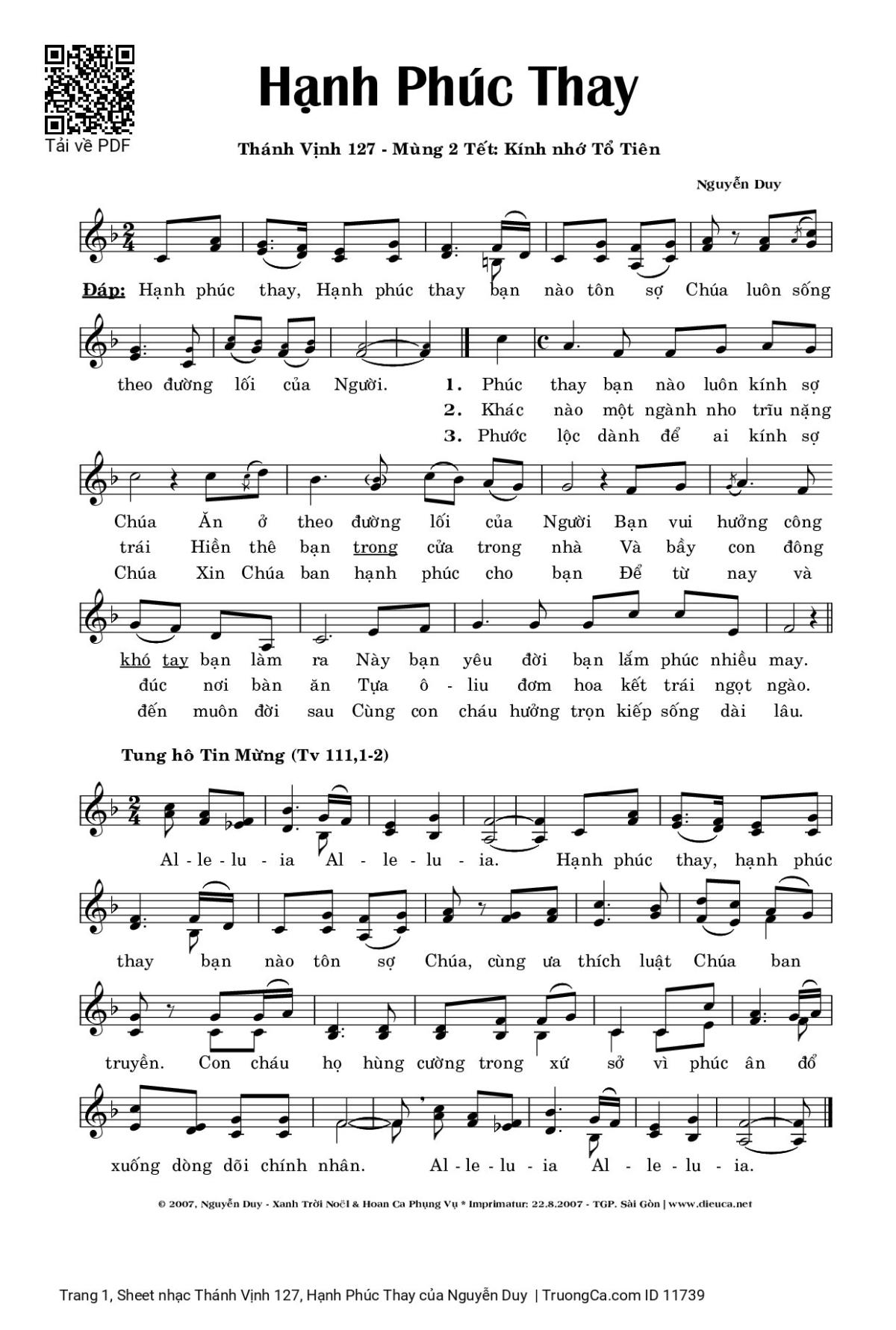 Sheet PDF with the same name Thánh Vịnh 127, Hạnh Phúc Thay: