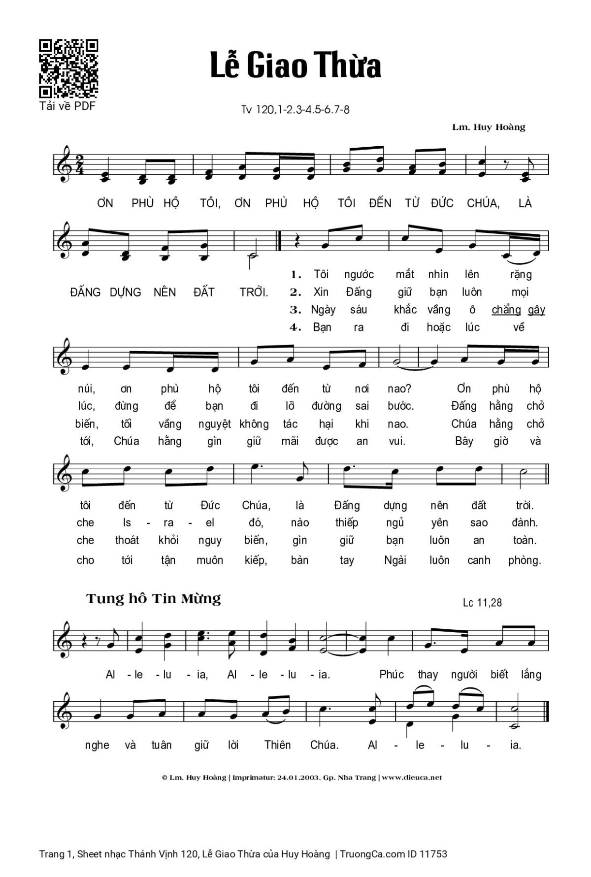 Sheet PDF with the same name Thánh Vịnh 120, Lễ Giao Thừa: