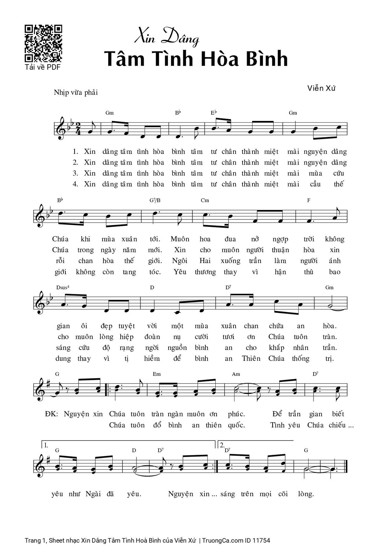 Viễn Xứ Xin dâng tâm tình hoà bình tâm tư chân thành miệt mài nguyện dâng Chúa khi mùa Xuân tới [PDF] [Sheet] [Lyrics] [Mp4/Midi]