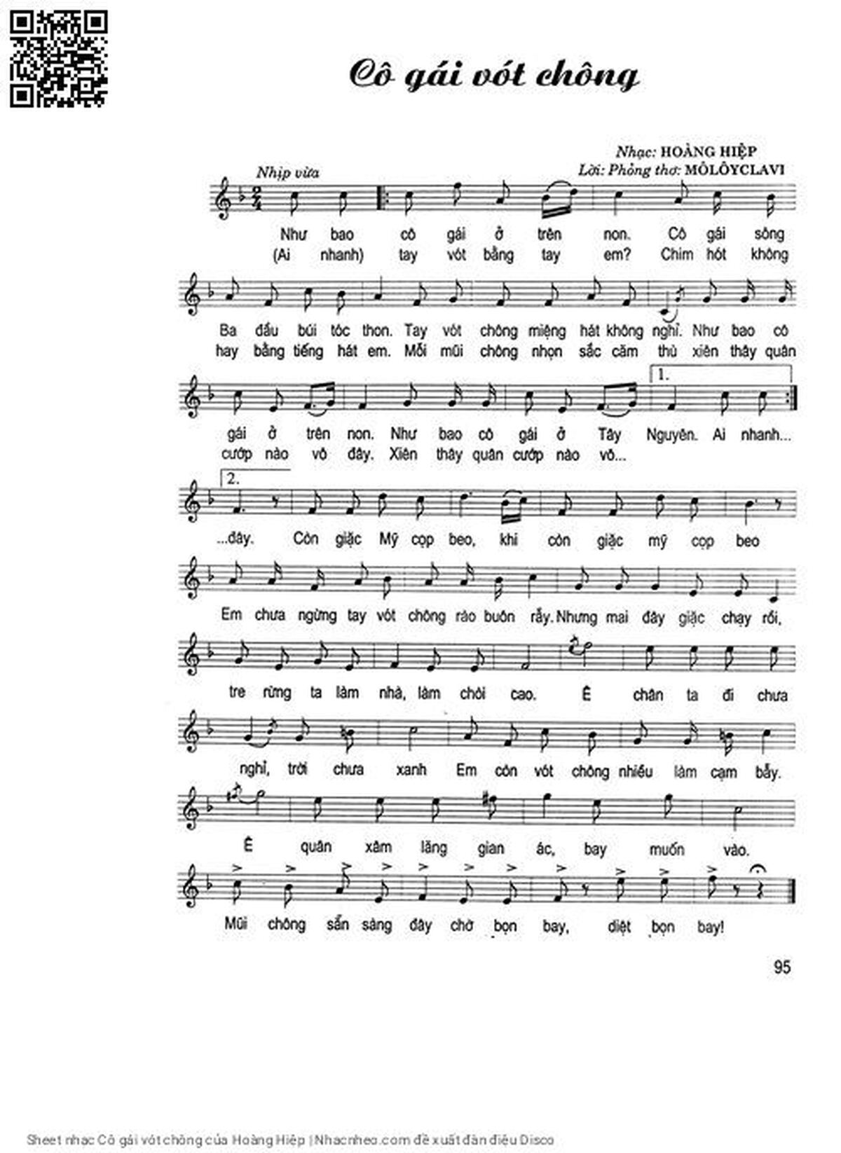 Hoàng Hiệp Như bao cô gái ở trên non Cô gái Sông Ba đầu búi tóc thon [PDF] [Sheet] [Lyrics] [Mp4/Midi]