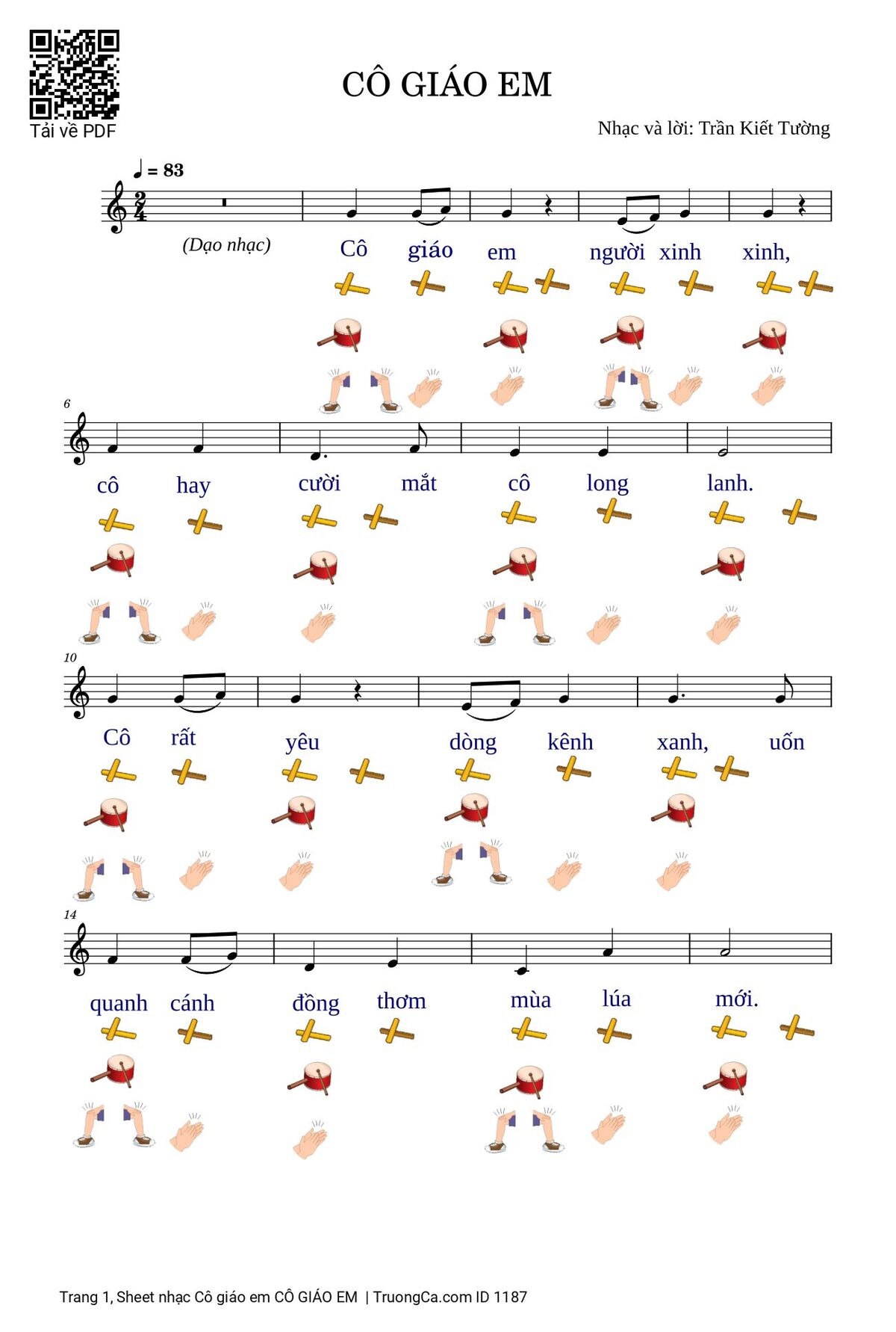 Trần Kiết Tường Cô giáo em người xinh xinh Cô hay cười mắt cô long lanh [PDF] [Sheet] [Lyrics] [Mp4/Midi]