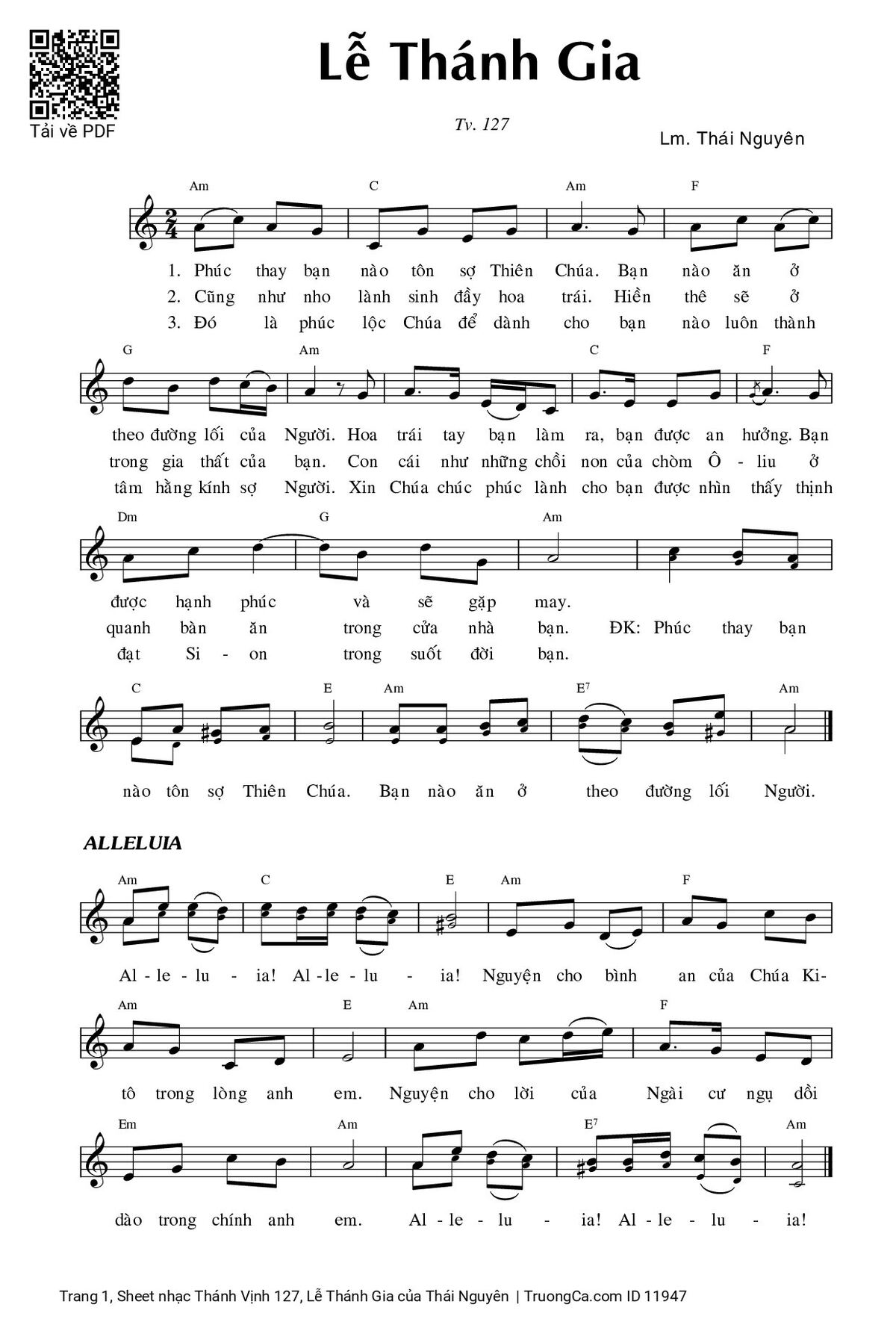 Thái Nguyên Thể hiện Ái Trinh Phúc thay bạn nào tôn sợ Thiên Chúa [PDF] [Sheet] [Lyrics] [Mp4/Midi]