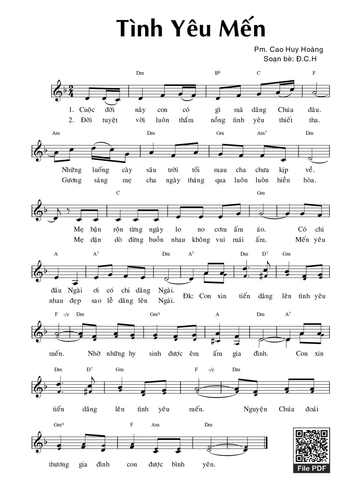 Điệp khúc. Con xin tiến dâng lên tình yêu mến nhờ những hy sinh được êm ấm gia đình. Con xin tiến dâng lên tình yêu mến, nguyện Chúa đoái thương gia đình con được bình yên.