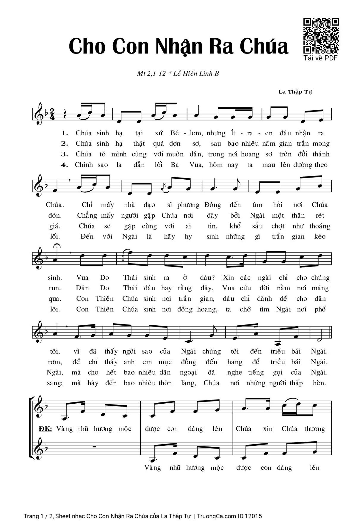 Sheet PDF with the same name Cho Con Nhận Ra Chúa: