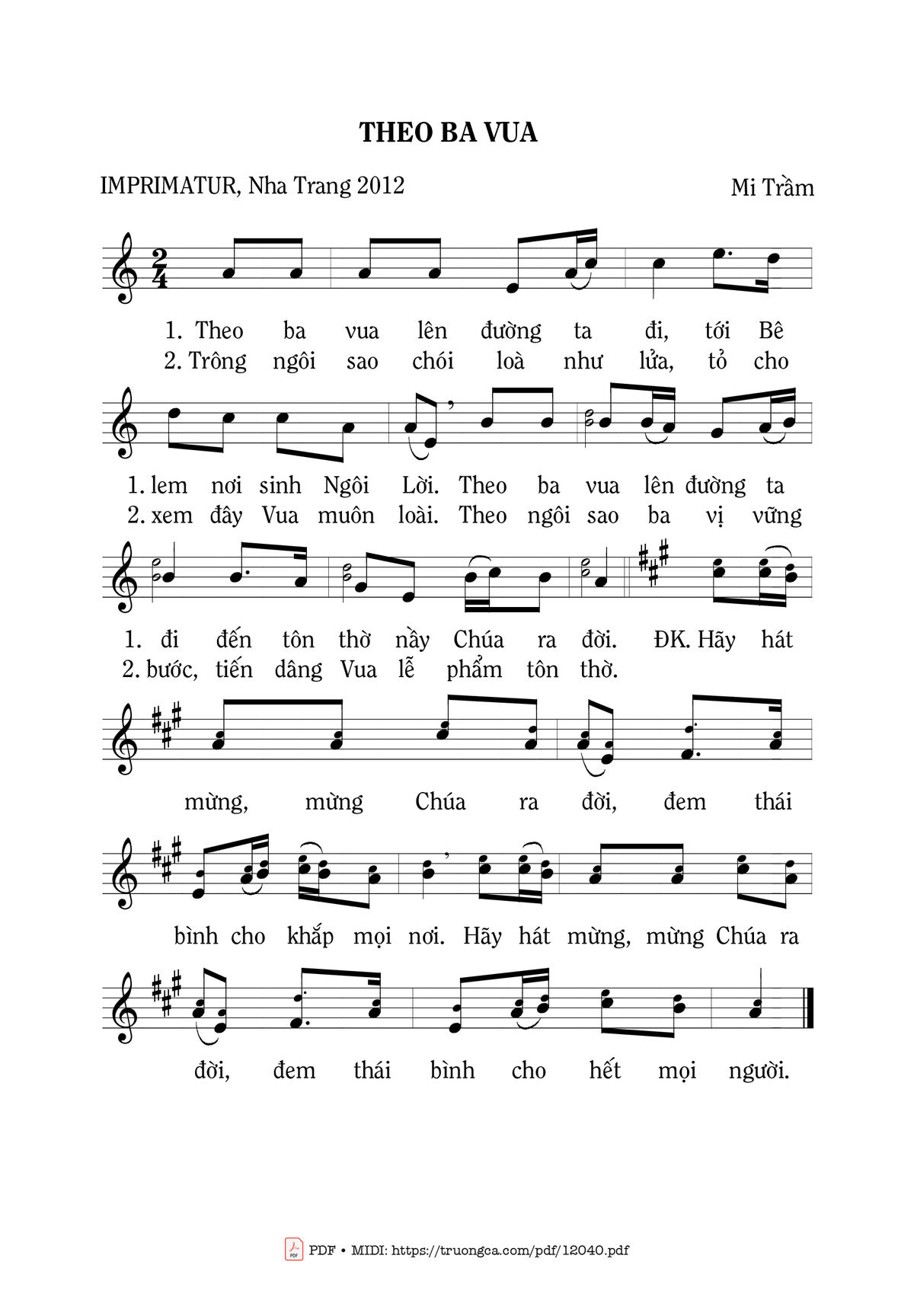 Mi Trầm Theo ba vua lên đường ta đi tới Bêlem nơi sinh Ngôi Lời [PDF] [Sheet] [Lyrics] [Mp4/Midi]