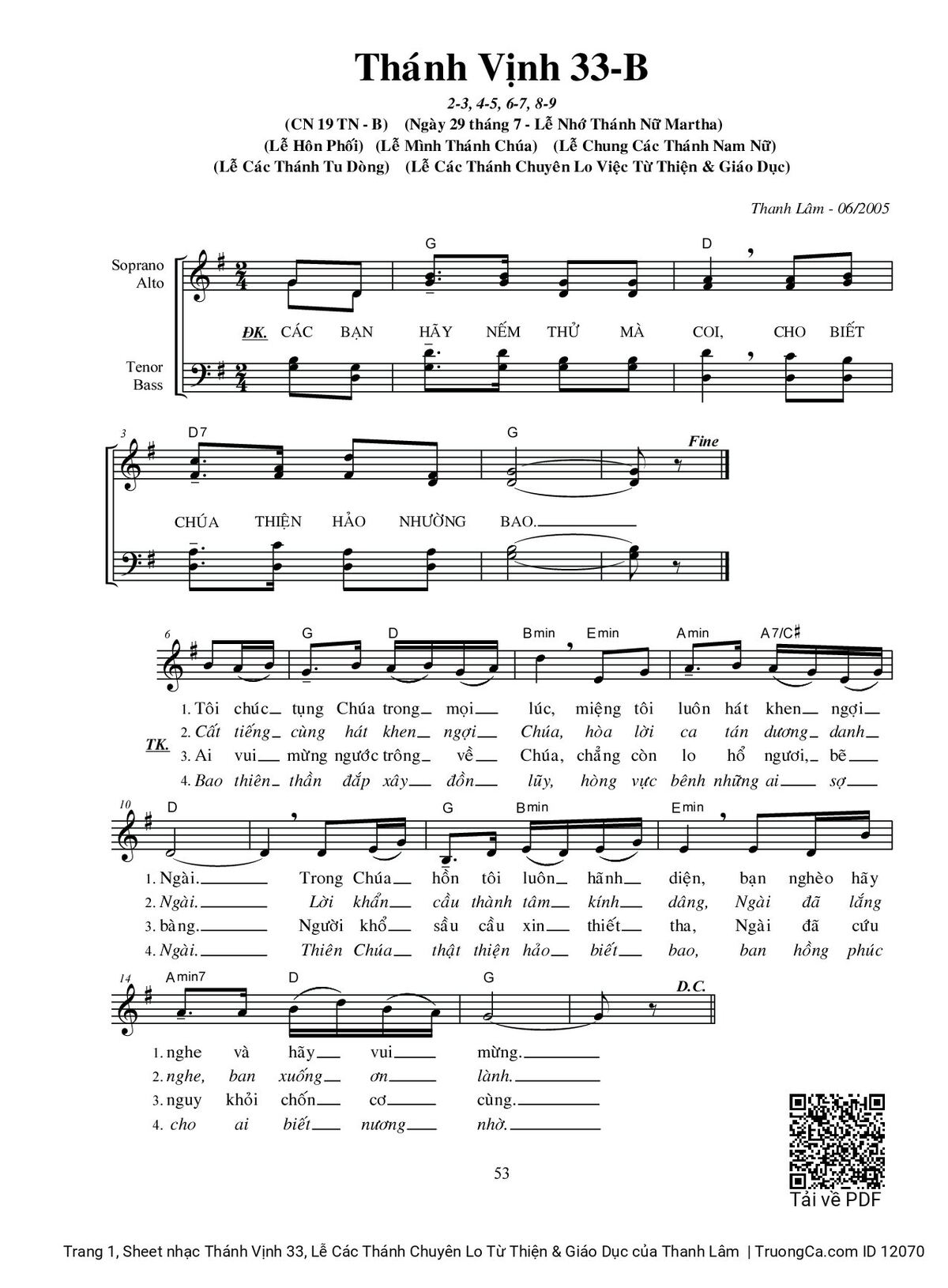 More similar sheets PDF Thánh Vịnh 33, Lễ Các Thánh Chuyên Lo Từ Thiện & Giáo Dục: