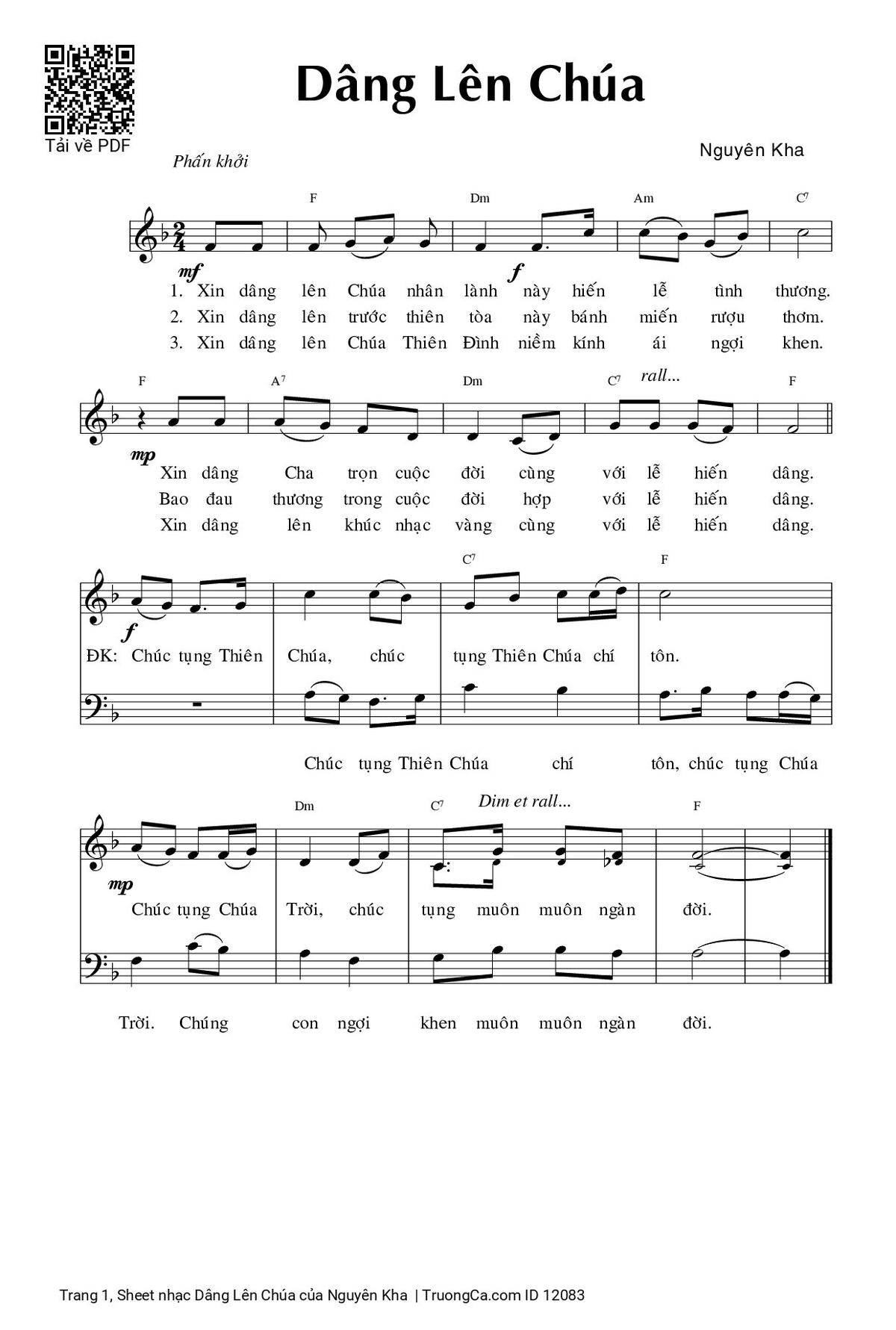 Sheet PDF with the same name Dâng Lên Chúa: