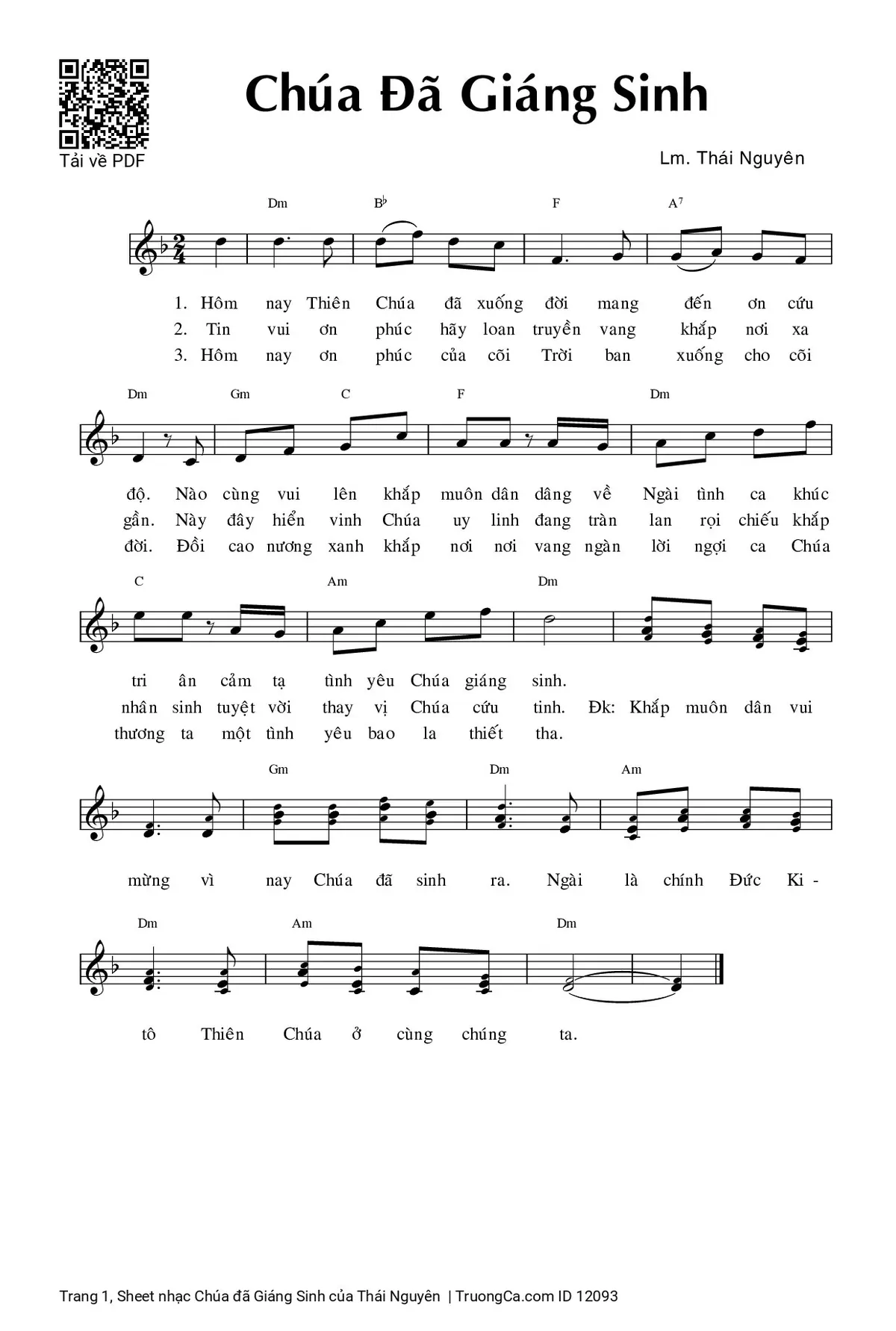 Sheet PDF with the same name Chúa đã Giáng Sinh: