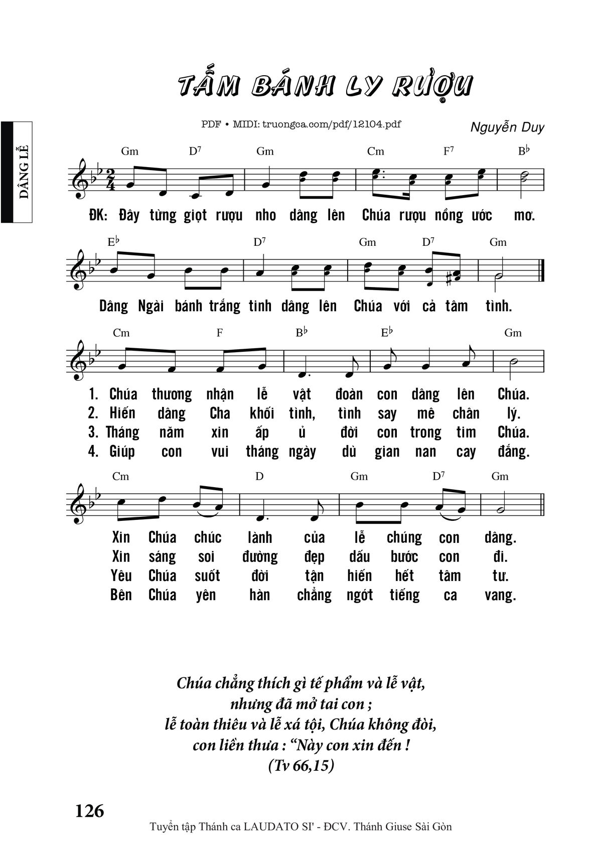 🌾 Thông tin chuẩn nhận dùng trong phụng vụ Công Giáo: Dâng Lễ. Imprimatur – Tgp. Sài Gòn: 22.08.2007