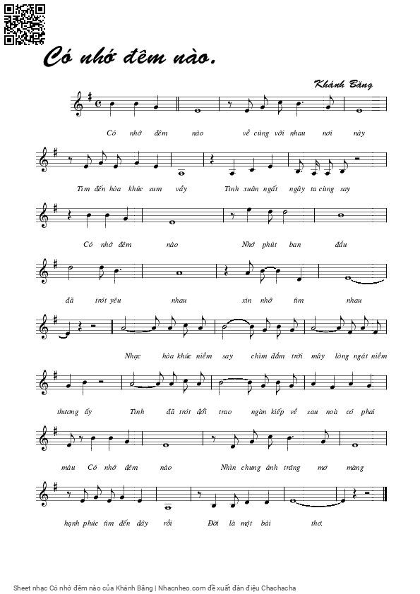Khánh Băng Có nhớ đêm nào Về chung với nhau nơi này [PDF] [Sheet] [Lyrics] [Mp4/Midi]