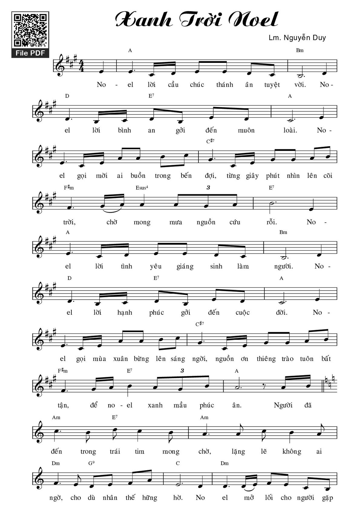 Nguyễn Duy Noel lời cầu chúc thánh ân tuyệt vời Noel lời bình an gởi đến muôn loài [PDF] [Sheet] [Lyrics] [Mp4/Midi]