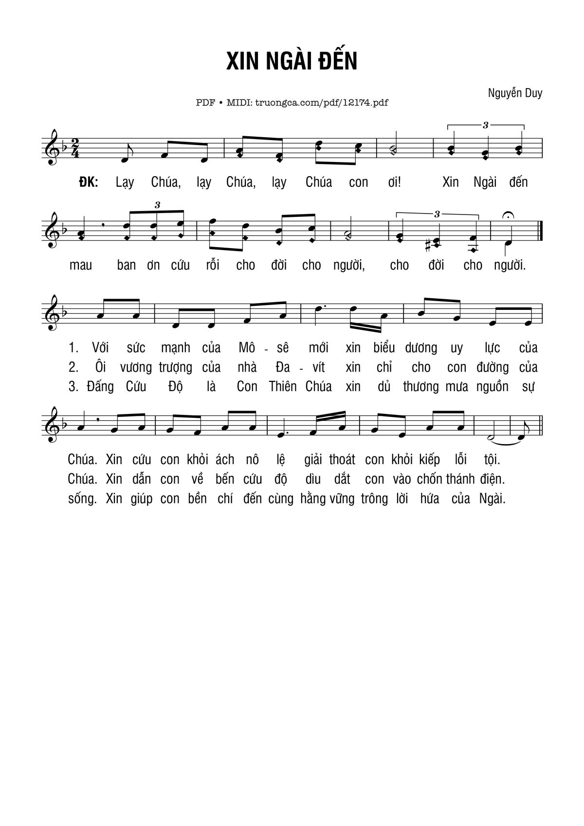 Nguyễn Duy Xin hãy đến xin Ngài hãy đến đến cứu độ [PDF] [Sheet] [Lyrics] [Mp4/Midi]