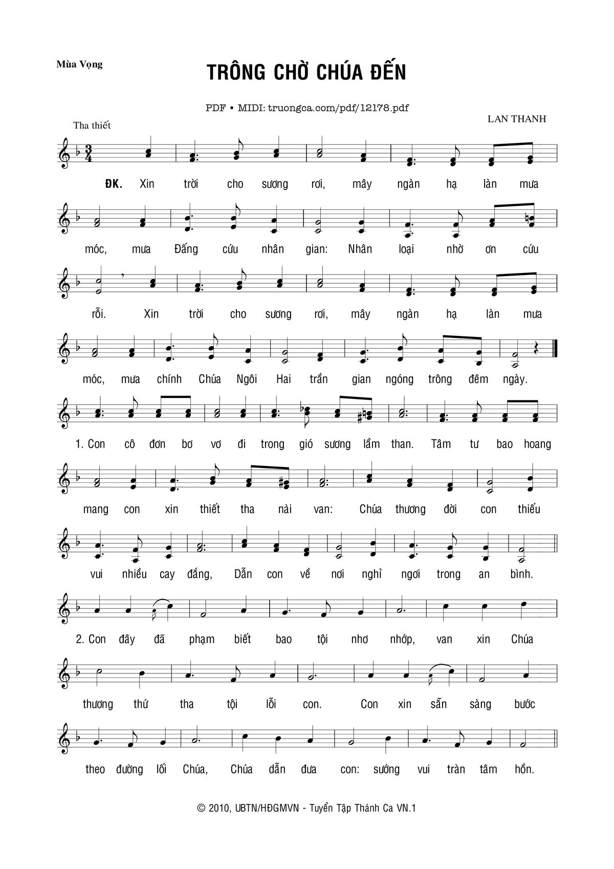 Lan Thanh Xin trời cho sương rơi mây ngàn hạ làn mưa móc mưa Đấng cứu nhân gian nhân loại nhờ ơn cứu rỗi [PDF] [Sheet] [Lyrics] [Mp4/Midi]