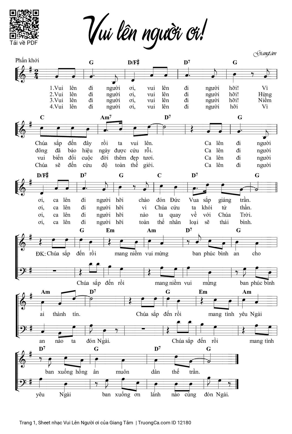 4. Vui lên đi người ơi, vui lên đi người hỡi! Vì Chúa sẽ đến cứu độ toàn thế giới. Ca lên đi người ơi, ca lên đi người hỡi toàn thể nhân loại sẽ thái bình.