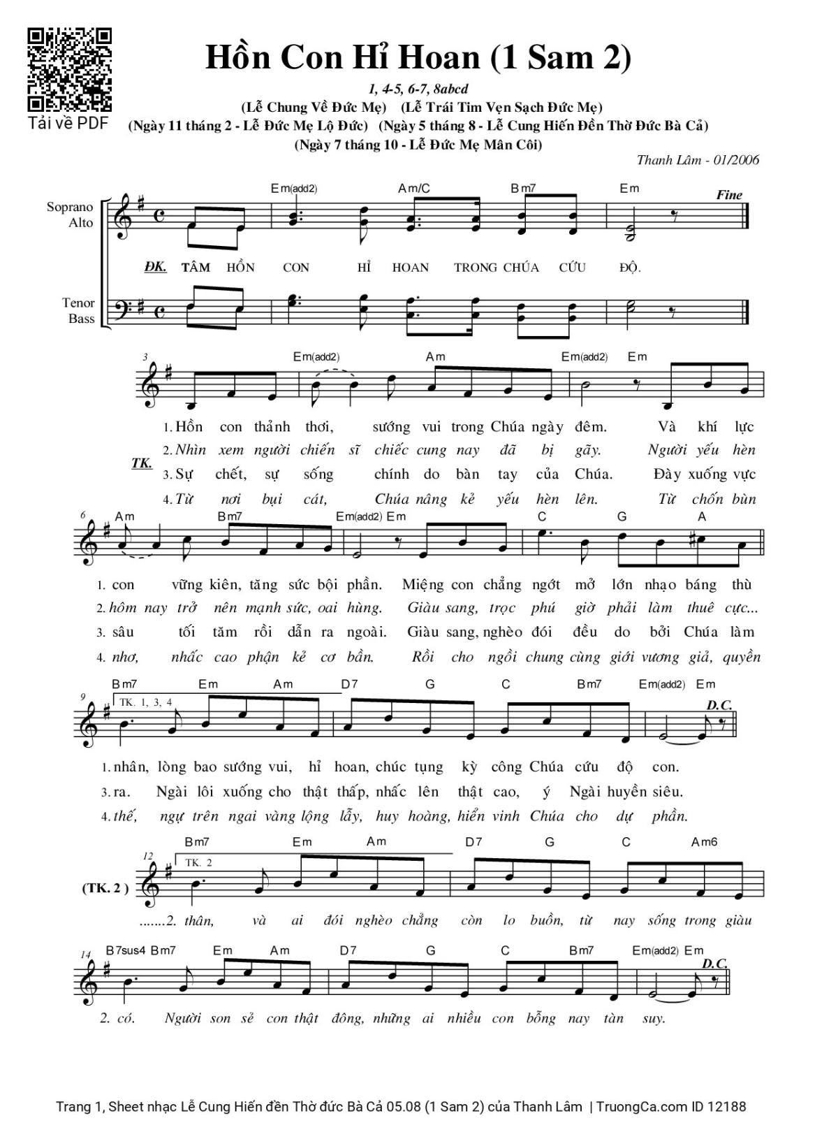 Thanh Lâm Hồn con vui mừng trong Thiên Chúa Tâm hồn con nhảy mừng ở trong Ngài [PDF] [Sheet] [Lyrics] [Mp4/Midi]