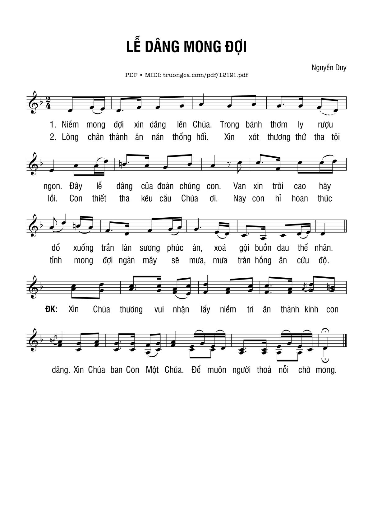 Nguyễn Duy Niềm mong đợi xin dâng lên Chúa Trong bánh thơm ly rượu ngon [PDF] [Sheet] [Lyrics] [Mp4/Midi]
