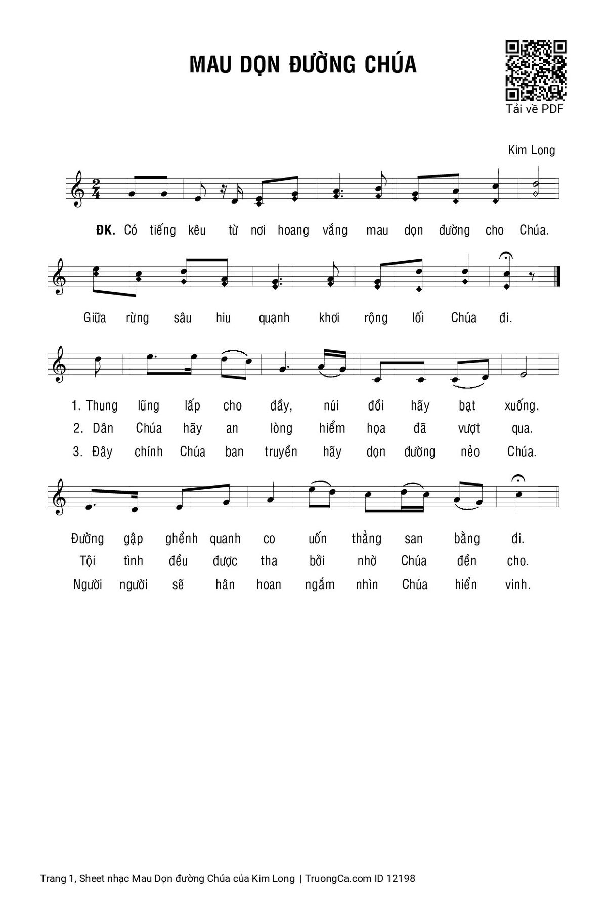 Sheet PDF with the same name Mau Dọn đường Chúa: