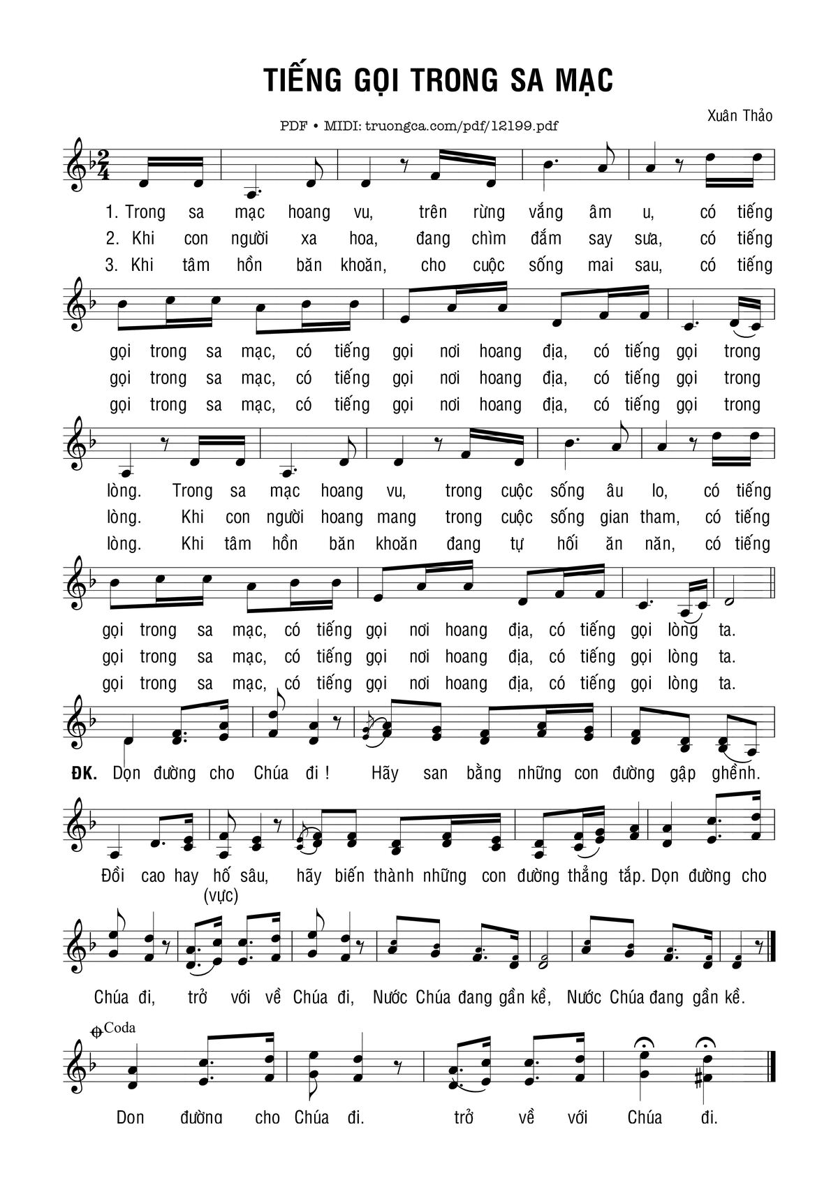 Xuân Thảo Trong sa mạc hoang vu Trên rừng vắng âm u [PDF] [Sheet] [Lyrics] [Mp4/Midi]