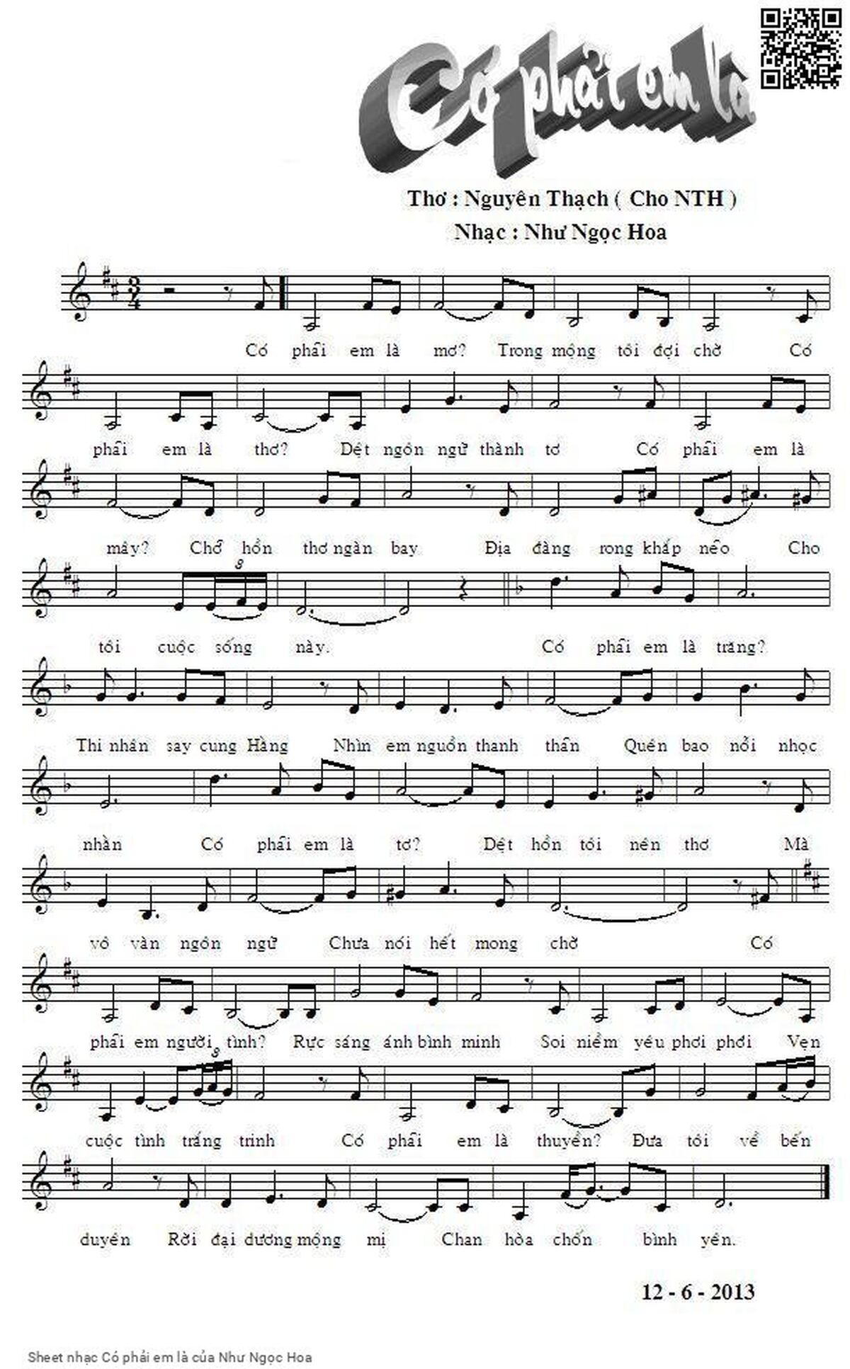 Như Ngọc Hoa Có phải em là mơ Trong mộng tôi đợi chờ [PDF] [Sheet] [Lyrics] [Mp4/Midi]