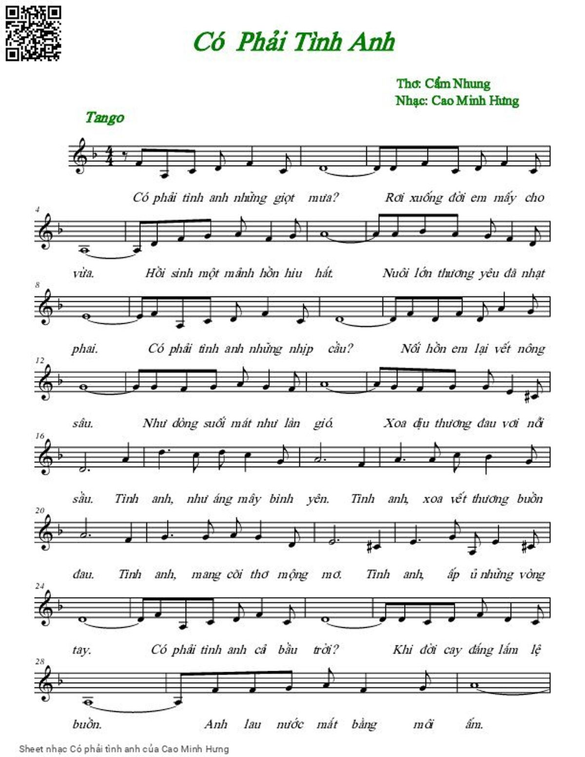 Cao Minh Hưng Có phải tình anh những giọt mưa Rơi xuống đời em mấy cho vừa [PDF] [Sheet] [Lyrics] [Mp4/Midi]