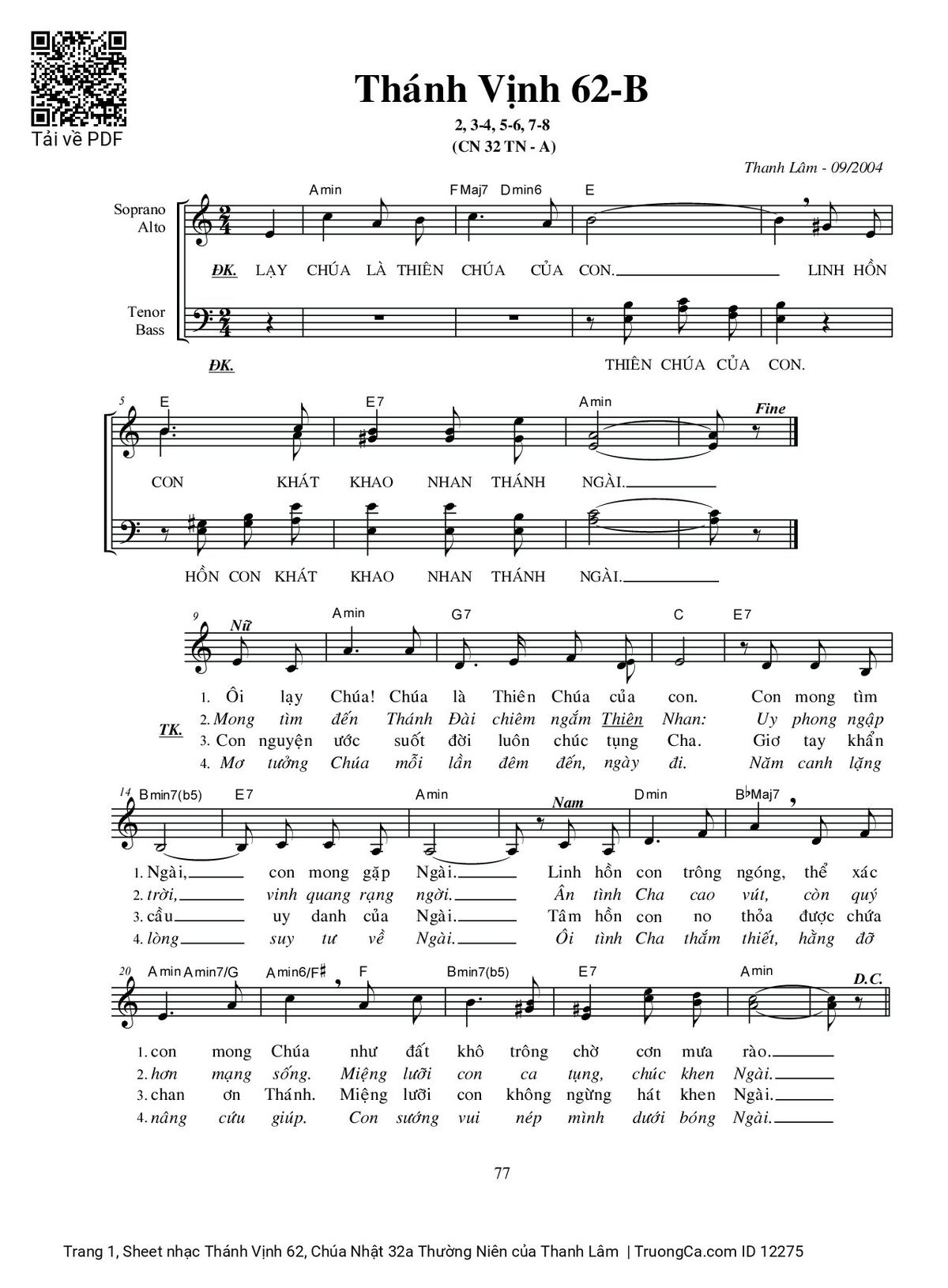 Sheet PDF with the same name Thánh Vịnh 62, Chúa Nhật 32a Thường Niên: