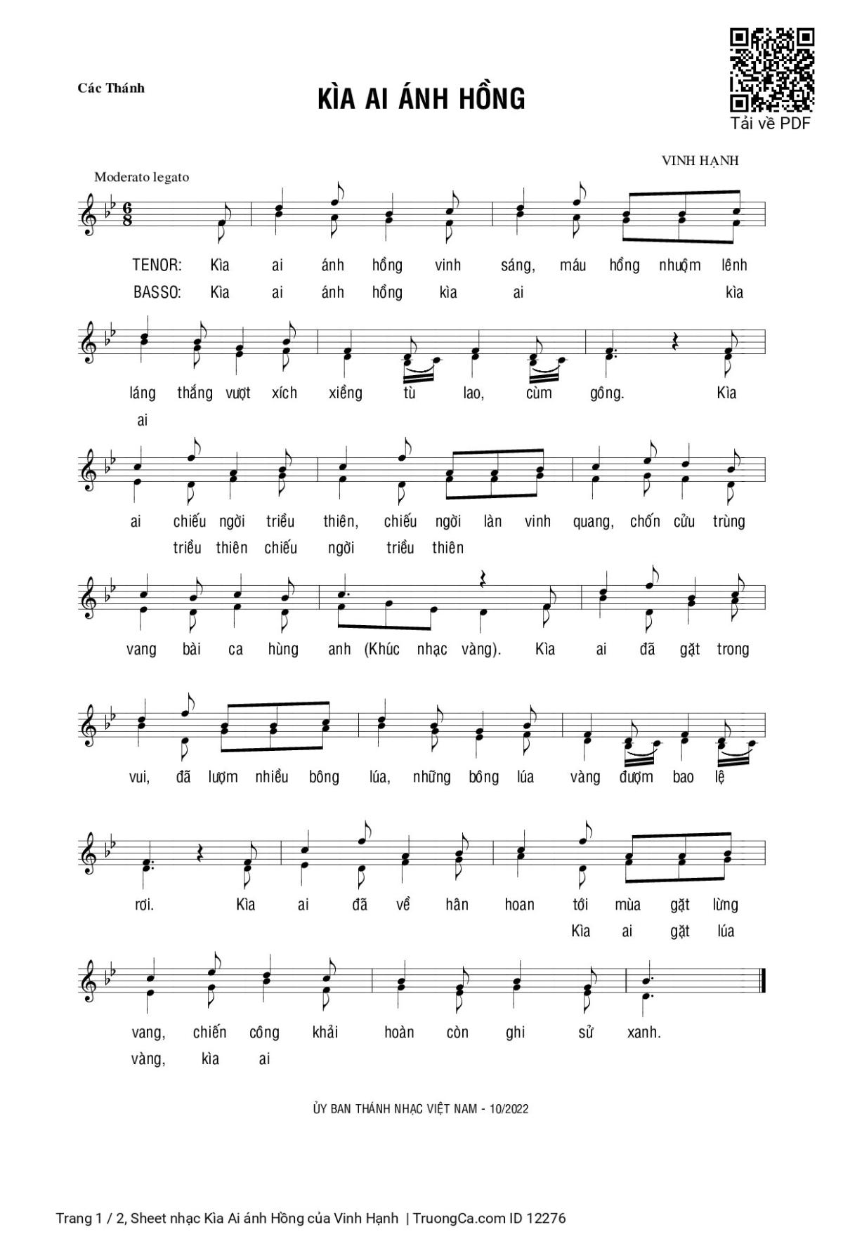 Vinh Hạnh ÐK Kìa ai ánh hồng vinh sáng máu hồng nhuộm lênh láng thắng vượt xích xiềng tù lao [PDF] [Sheet] [Lyrics] [Mp4/Midi]
