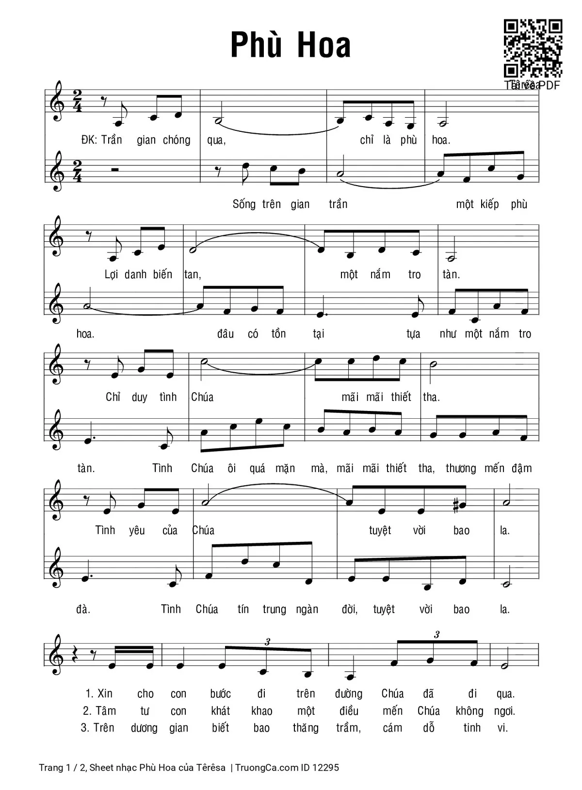 Têrêsa Trần gian chóng qua chỉ là phù hoa Lợi danh biến tan [PDF] [Sheet] [Lyrics] [Mp4/Midi]