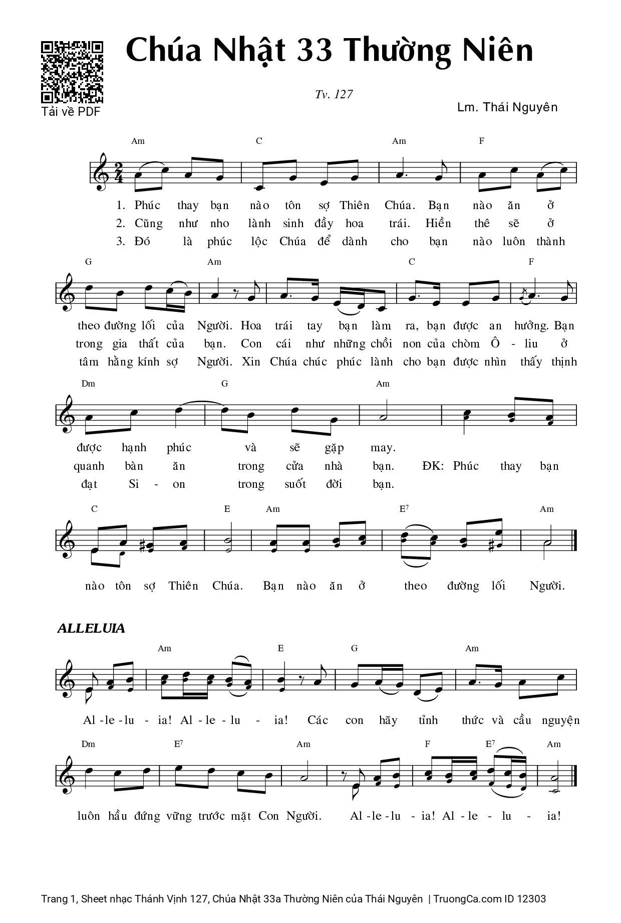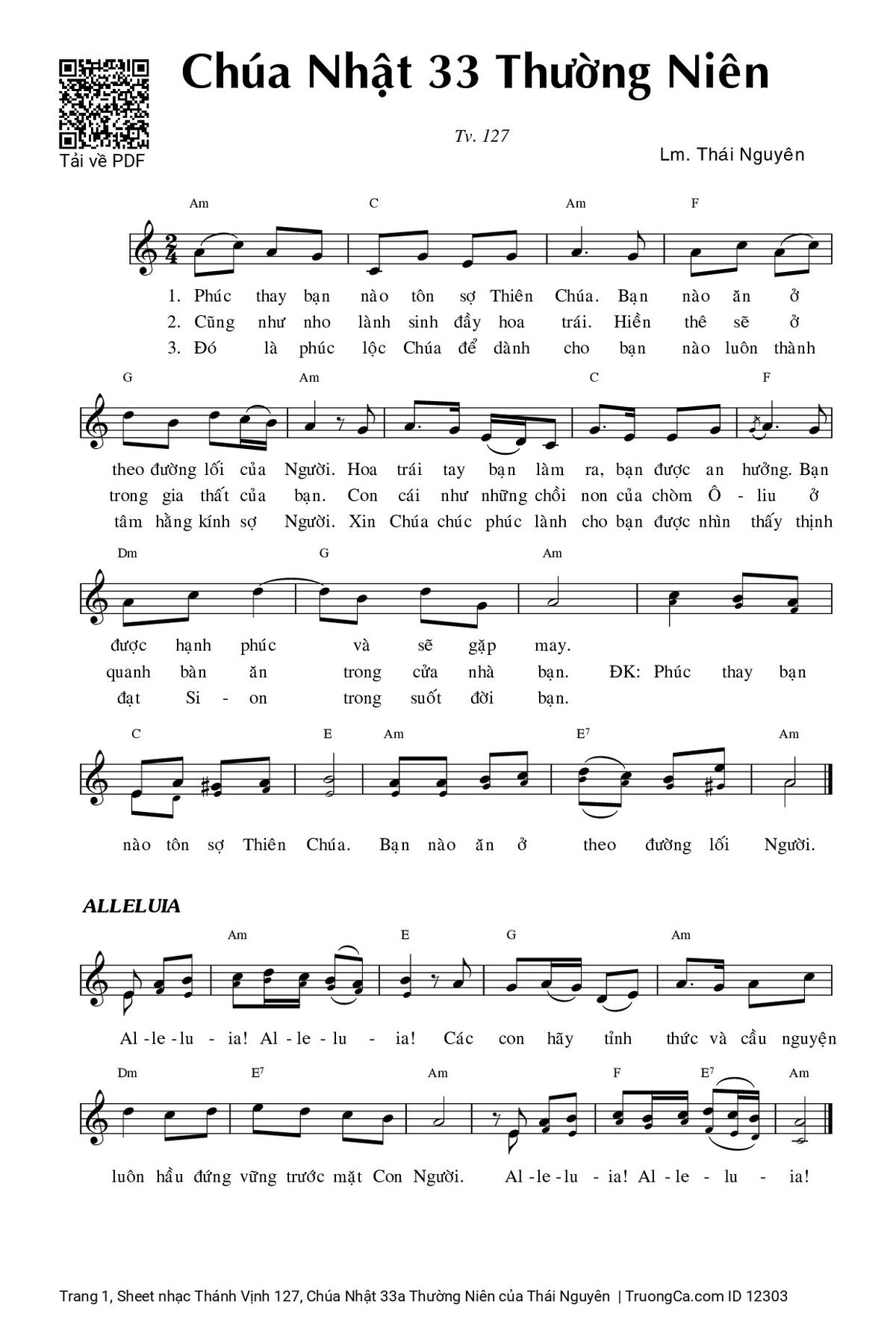 Thái Nguyên Phúc thay bạn nào tôn sợ Thiên Chúa Bạn nào ăn ở theo đường lối Người [PDF] [Sheet] [Lyrics] [Mp4/Midi]