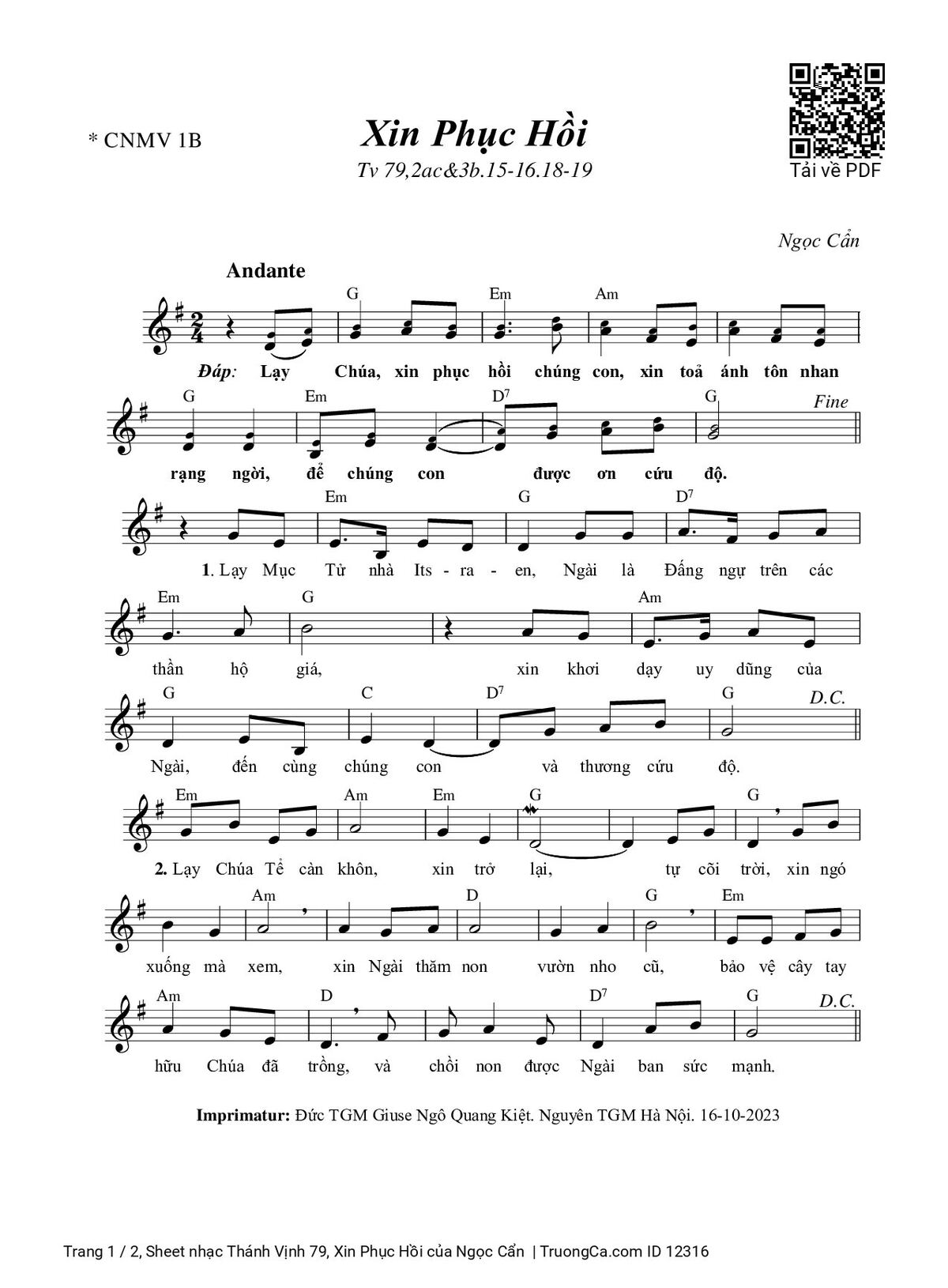 More similar sheets PDF Thánh Vịnh 79, Xin Phục Hồi: