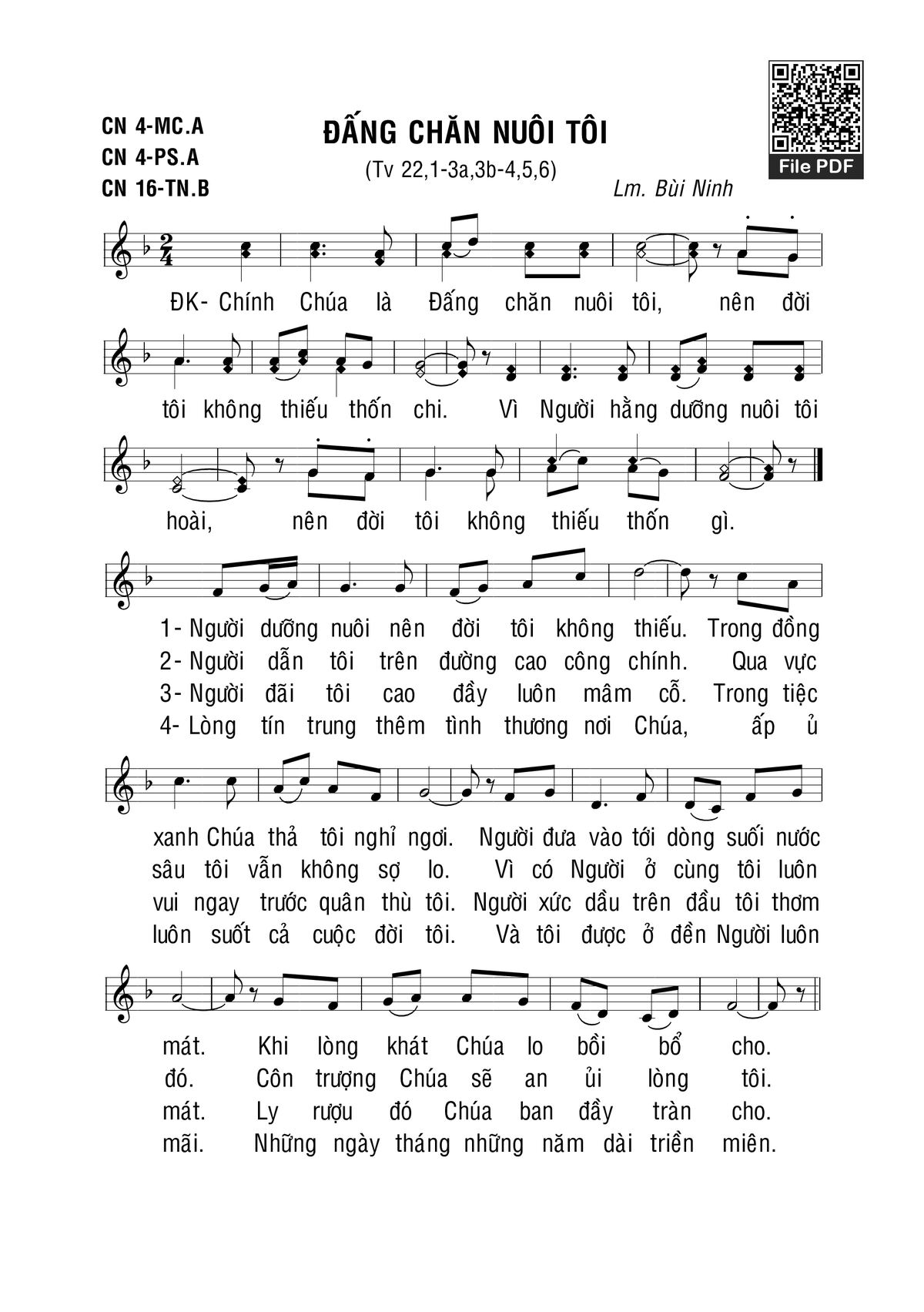 Bùi Ninh Chính Chúa là Đấng chăn nuôi tôi nên đời tôi không thiếu thốn chi [PDF] [Sheet] [Lyrics] [Mp4/Midi]