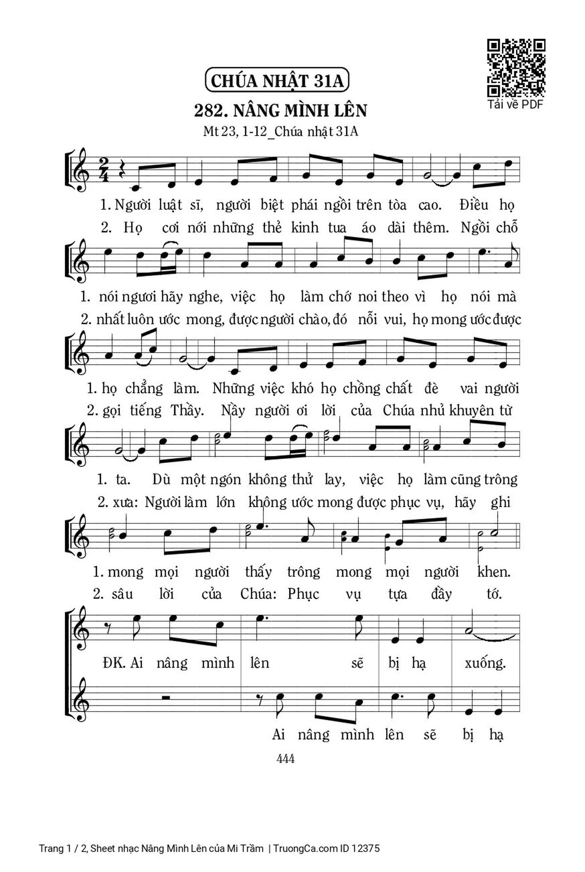 Điệp khúc. Ai nâng mình lên sẽ bị hạ xuống. Ai hạ mình xuống sẽ được nâng lên. Ai nâng mình lên sẽ bị hạ xuống. Ai hạ mình xuống sẽ được nâng lên.