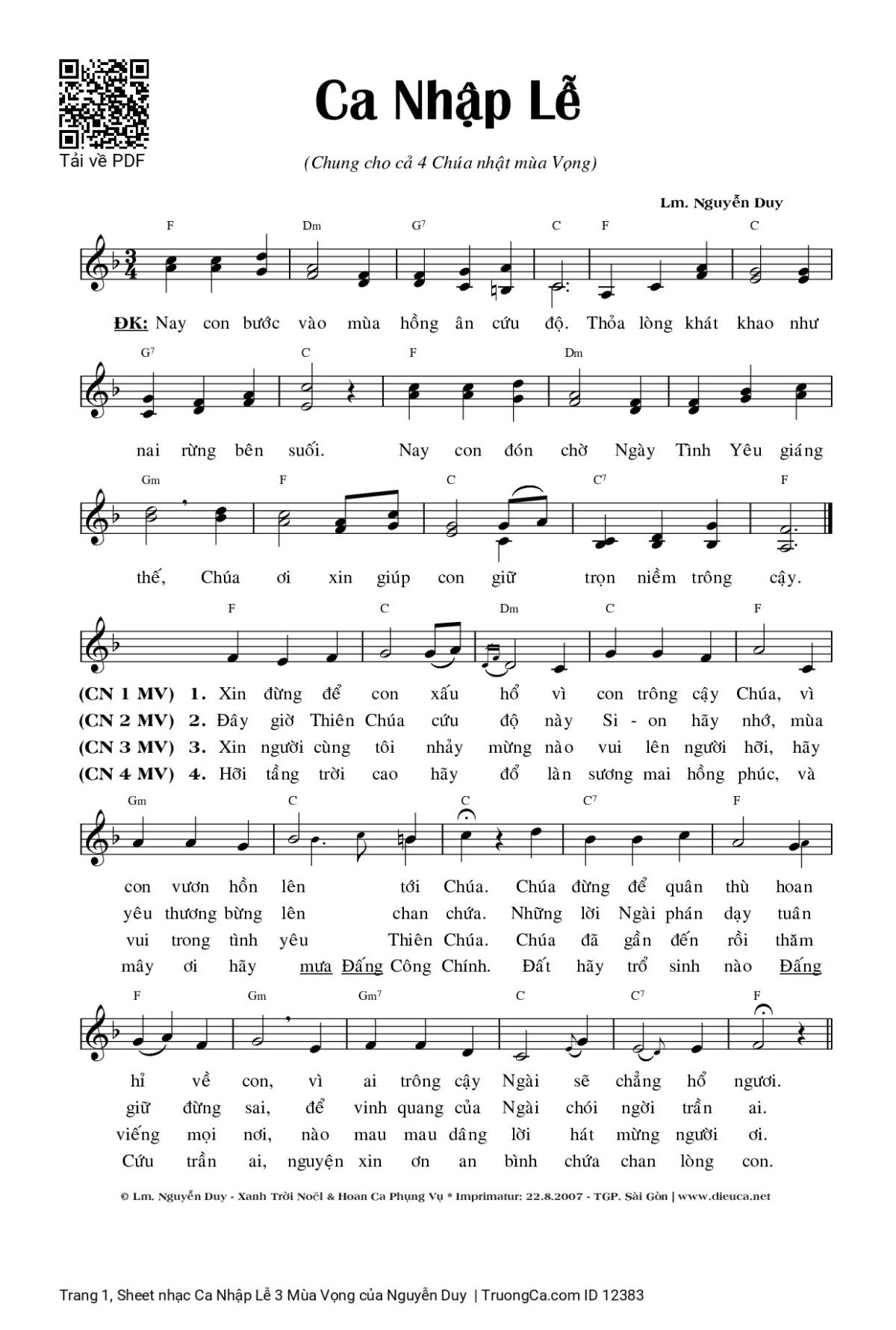 🌾 Thông tin chuẩn nhận dùng trong phụng vụ Công Giáo: Nhập Lễ – Mùa Vọng. Imprimatur – Tgp. Sài Gòn: 22.8.2007