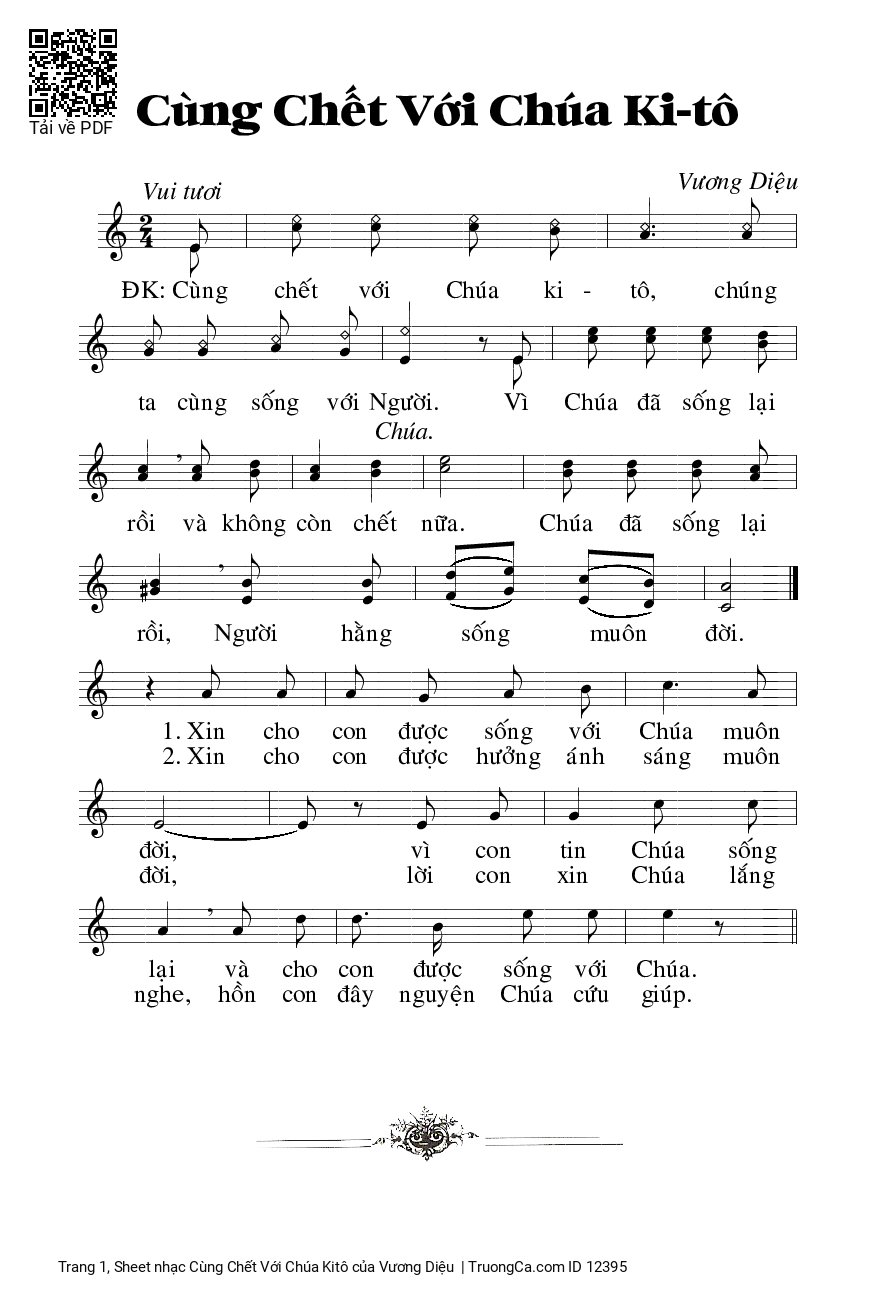 Vương Diệu Cùng chết với Chúa Kitô chúng ta cùng sống với Người [PDF] [Sheet] [Lyrics] [Mp4/Midi]
