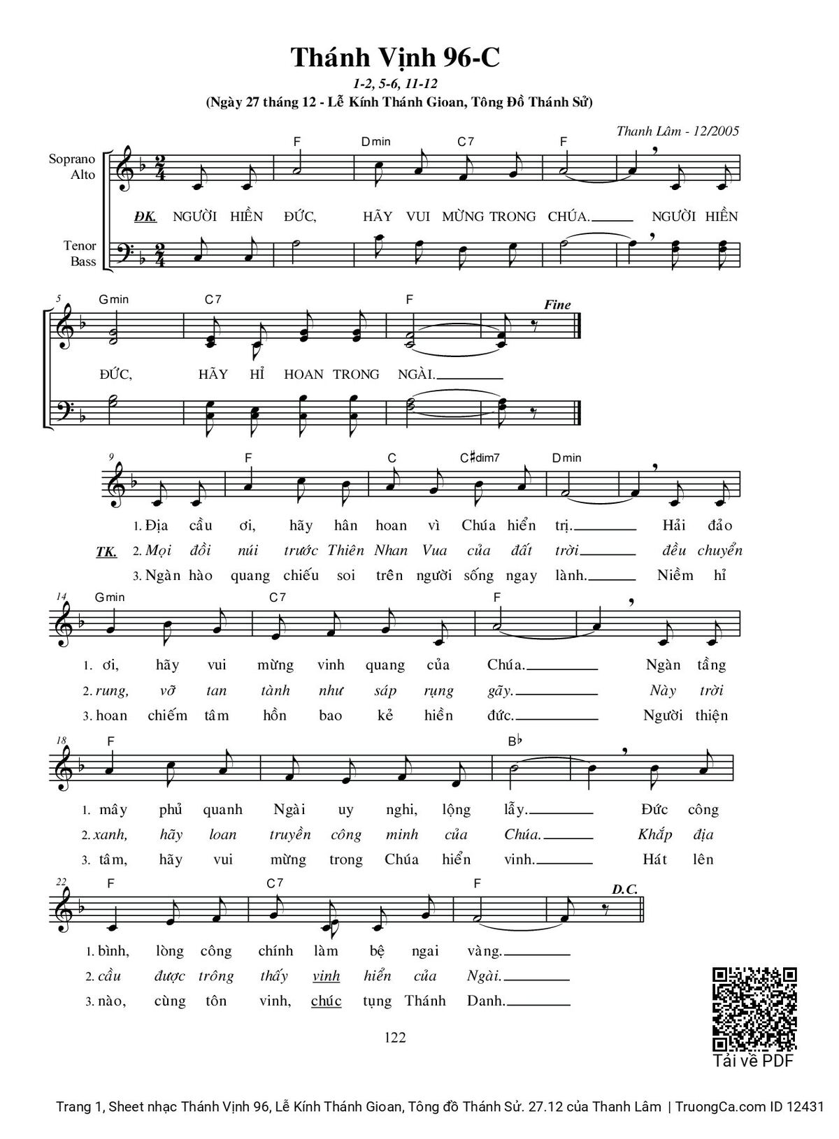 Category 🌾 Nhạc Thánh Ca, 🌾 Thánh Vịnh - Đáp Ca, 🌾 Thánh ca Imprimatur, 🌾 Thánh Vịnh 96