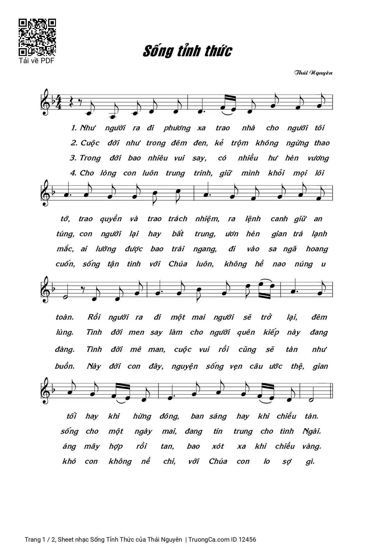 Thái Nguyên Như người ra đi phương xa trao nhà cho người tôi tớ [PDF] [Sheet] [Lyrics] [Mp4/Midi]
