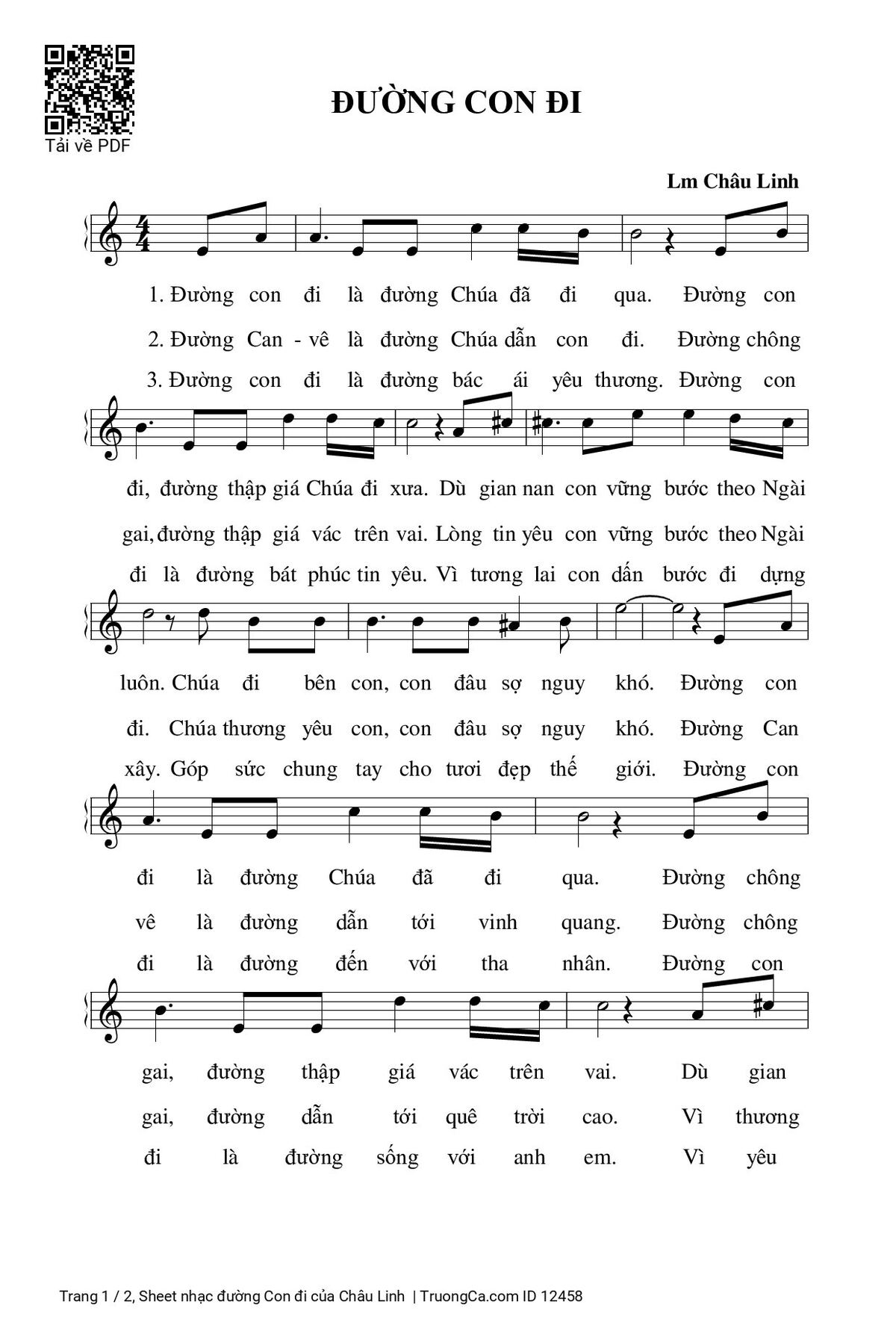 Châu Linh Đường con đi là đường Chúa đã đi qua [PDF] [Sheet] [Lyrics] [Mp4/Midi]
