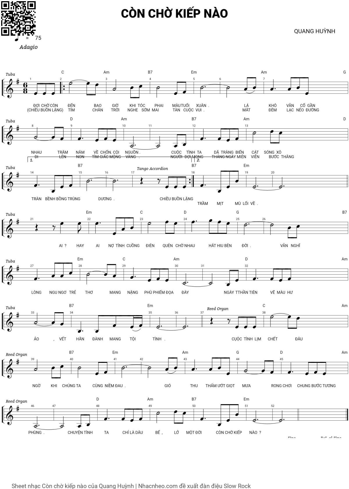 Quang Huỳnh Đợi chờ còn đến bao giờ Khi tóc phai màu tuổi xuân [PDF] [Sheet] [Lyrics] [Mp4/Midi]