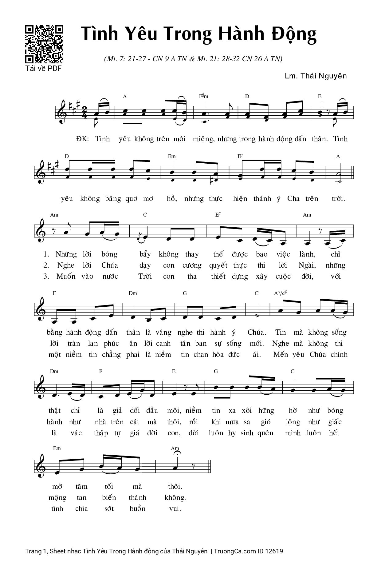 Thái Nguyên Tình yêu không trên môi miệng nhưng trong hành động dấn thân [PDF] [Sheet] [Lyrics] [Mp4/Midi]