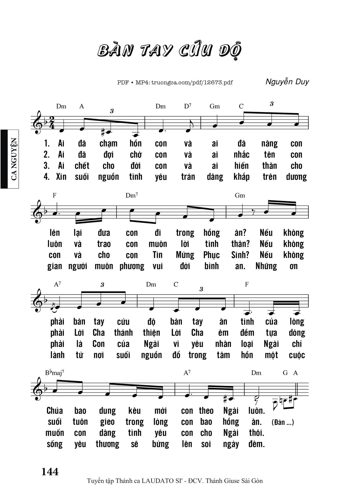 Transposition is the process of moving a song's melody and chords up or down in pitch by a constant interval. The direction of the transposition tool is indicated by a plus (+) sign for up and a minus (-) sign for down. Hover mouse over chords signs to see the chords chart of Bàn Tay Cứu độ song.