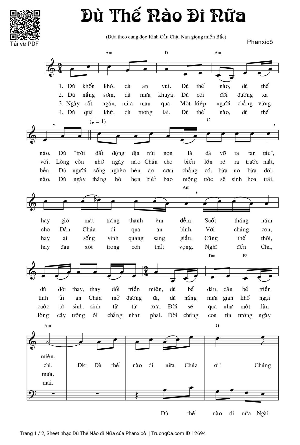 Phanxicô Dù khốn khó dù an vui dù thế nào dù thế nào [PDF] [Sheet] [Lyrics] [Mp4/Midi]