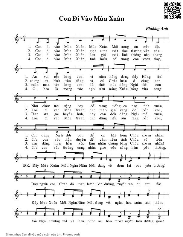 Lm. Phương Anh Con đi vào mùa xuân mùa xuân mới trong ơn cứu độ [PDF] [Sheet] [Lyrics] [Mp4/Midi]