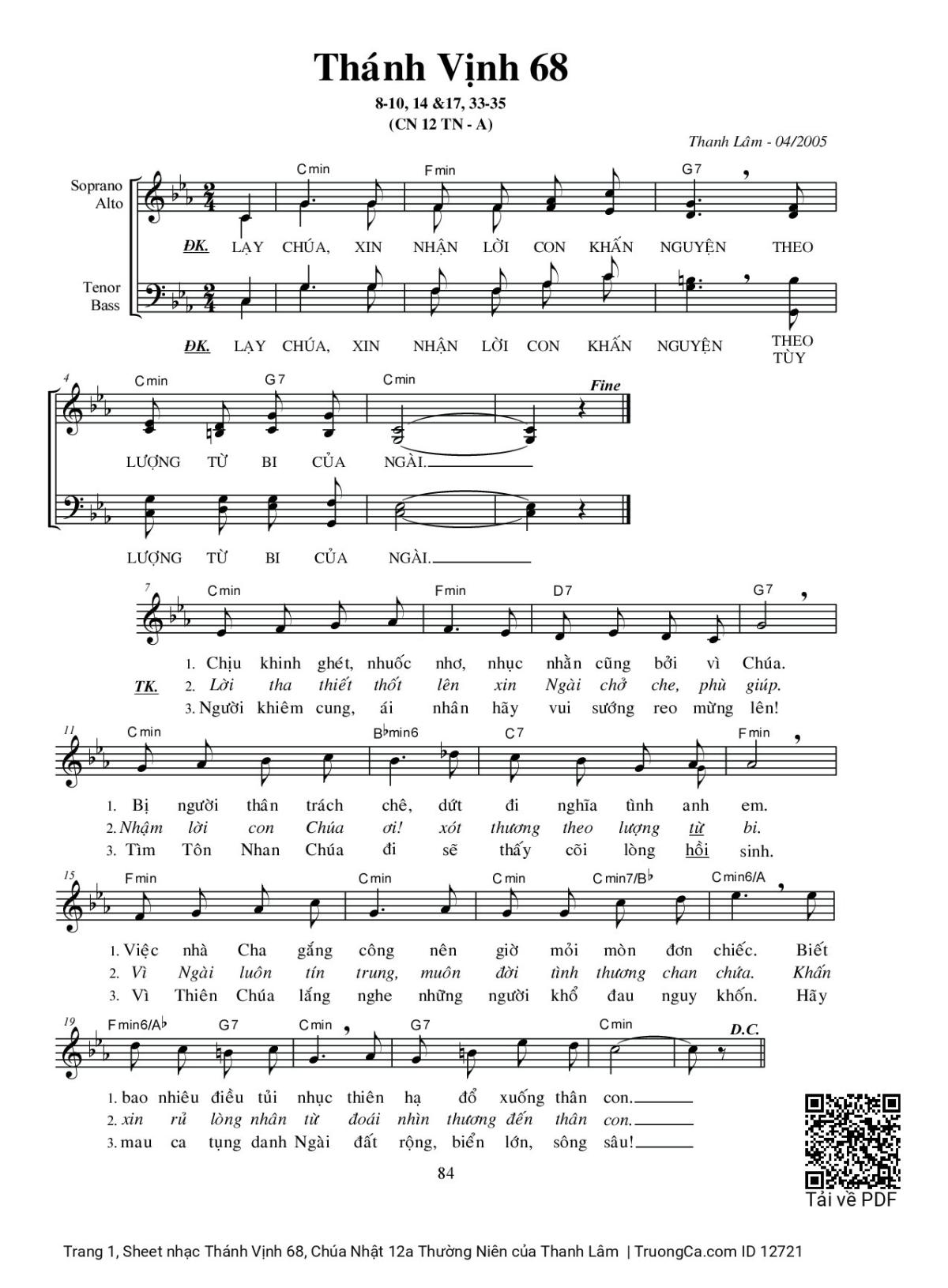 Sheet PDF with the same name Thánh Vịnh 68, Chúa Nhật 12a Thường Niên: