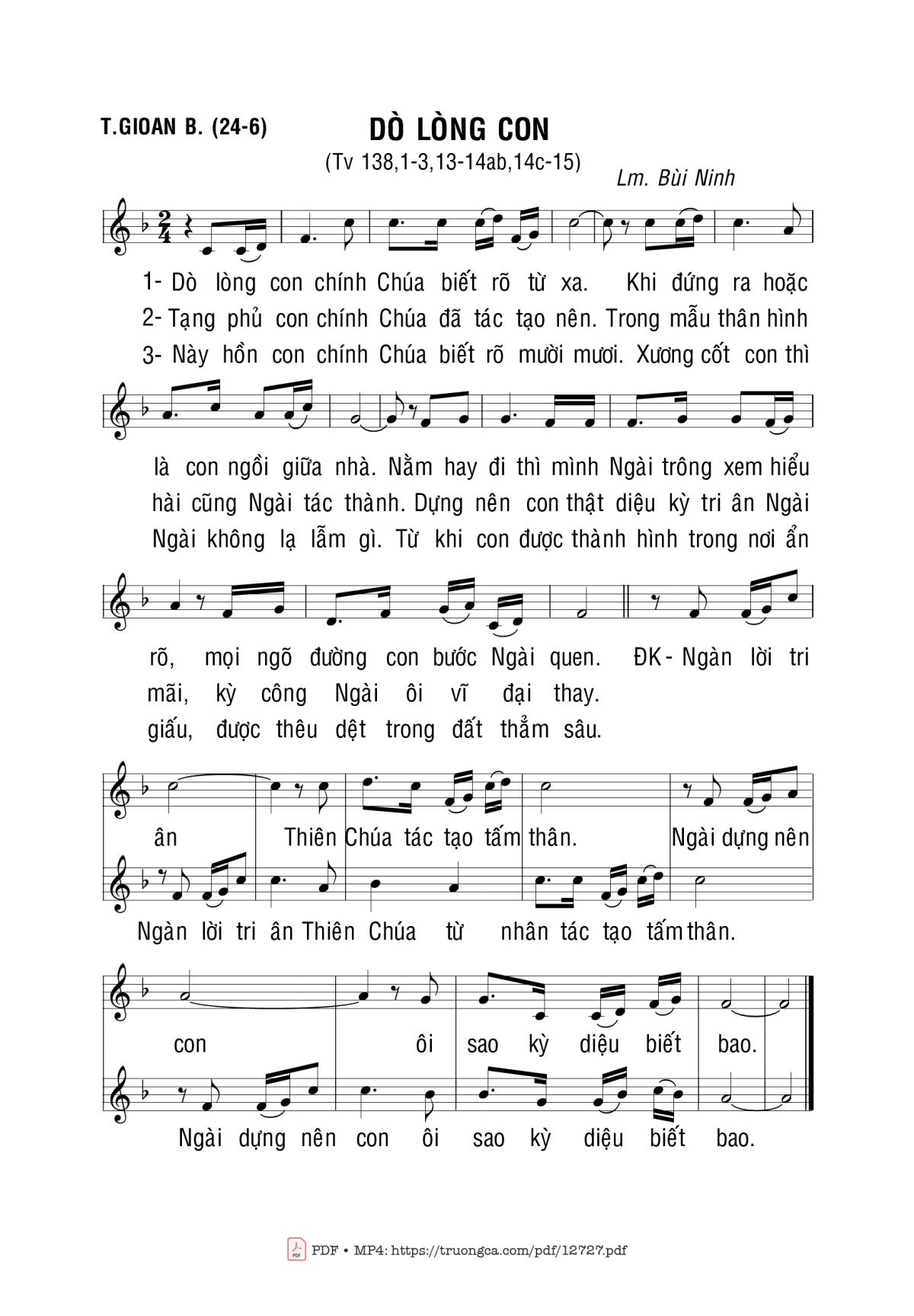Bùi Ninh Dò lòng con chính Chúa biết rõ từ xa Khi đứng ra hoặc là con ngồi giữa nhà [PDF] [Sheet] [Lyrics] [Mp4/Midi]