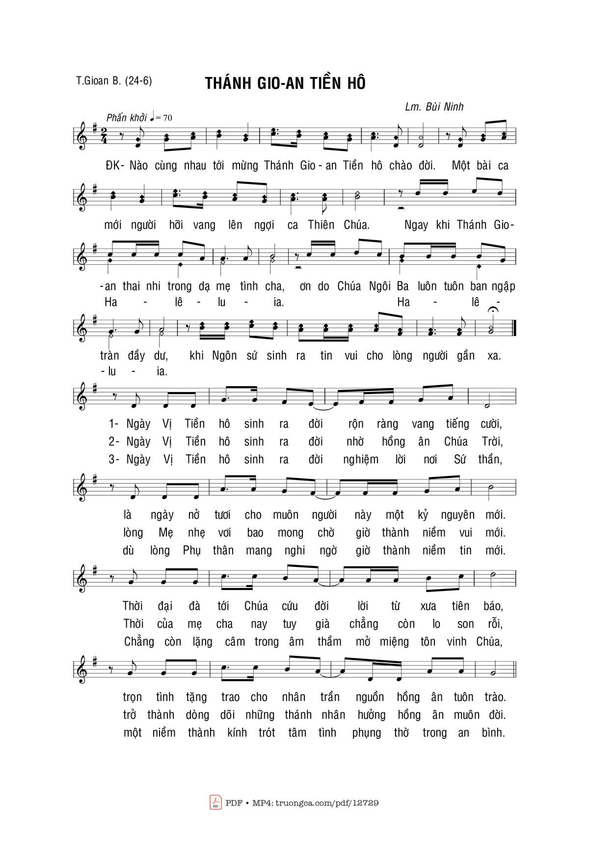 Bùi Ninh Nhập Lễ Nào cùng nhau tới mừng Thánh Gioan Tiền hô chào đời [PDF] [Sheet] [Lyrics] [Mp4/Midi]