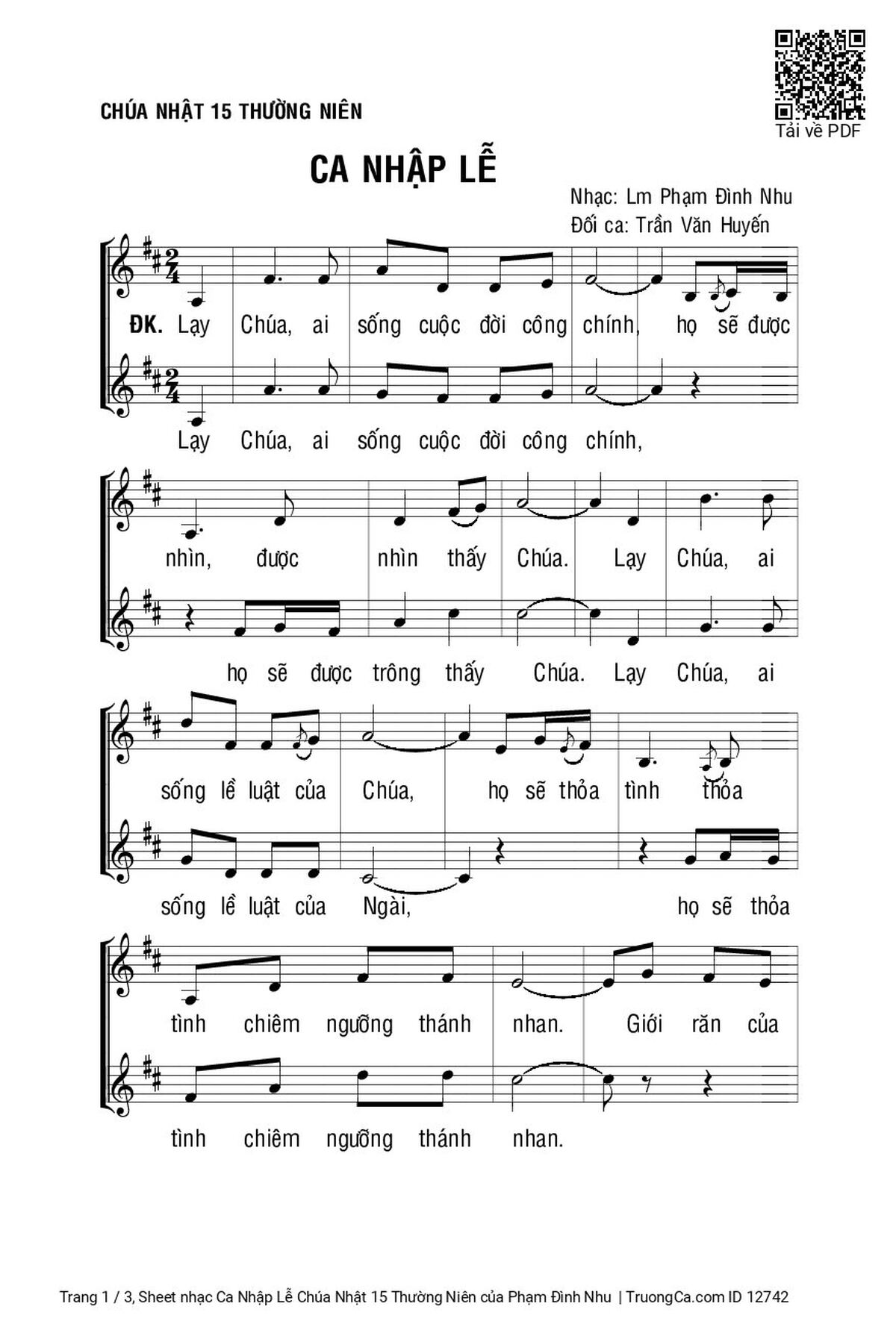 More similar sheets PDF Ca Nhập Lễ Chúa Nhật 15 Thường Niên: