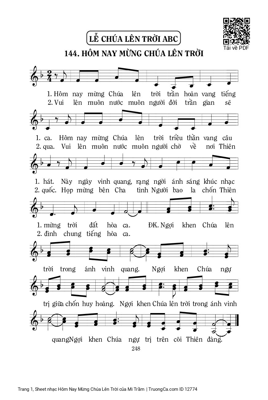 Sheet PDF with the same name Hôm Nay Mừng Chúa Lên Trời: