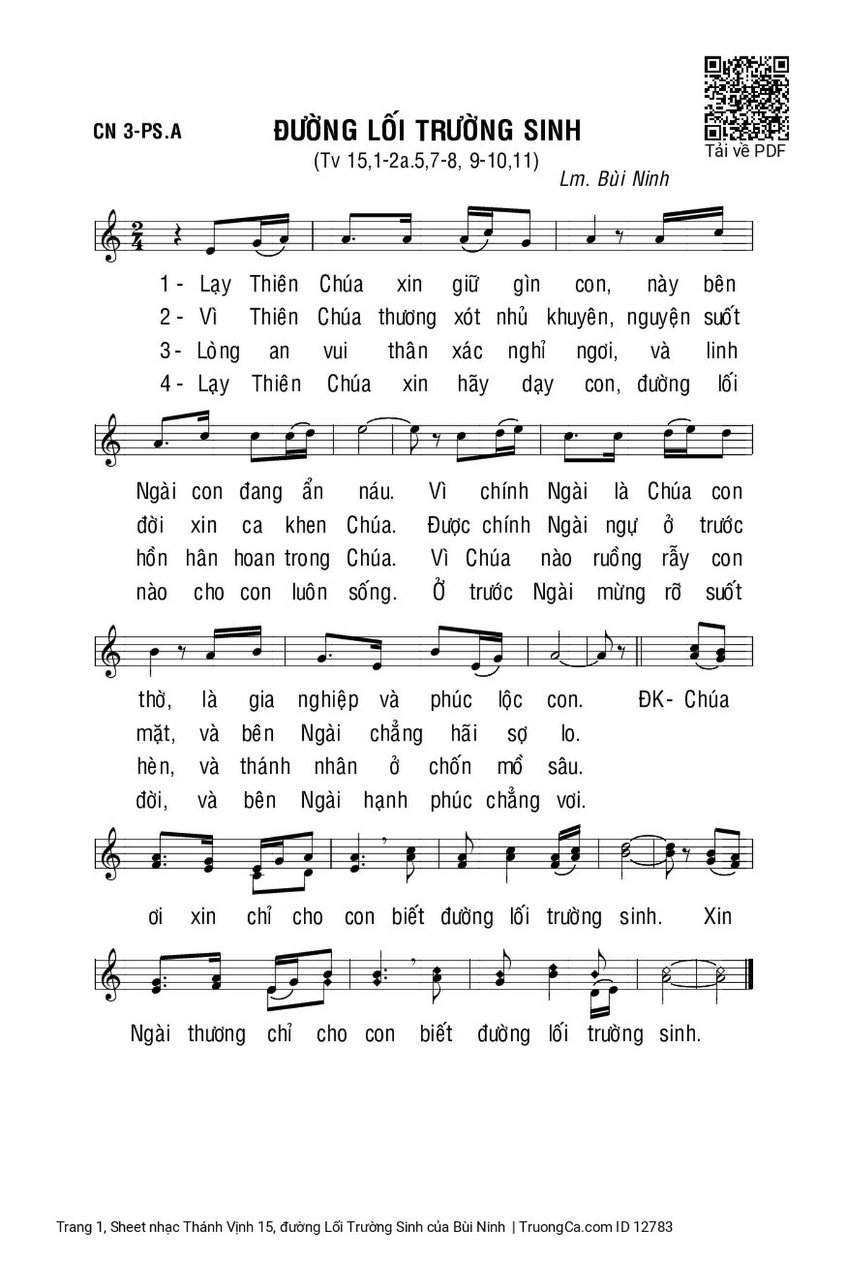 Sheet PDF with the same name Thánh Vịnh 15, đường Lối Trường Sinh: