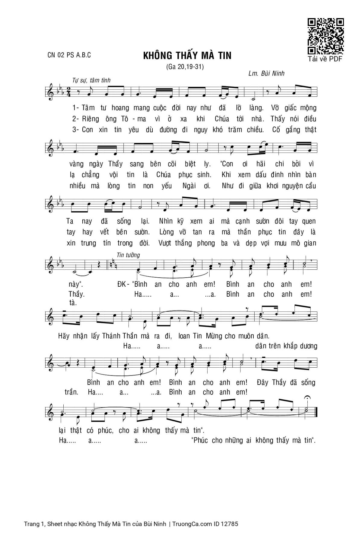 Sheet PDF with the same name Không Thấy Mà Tin: