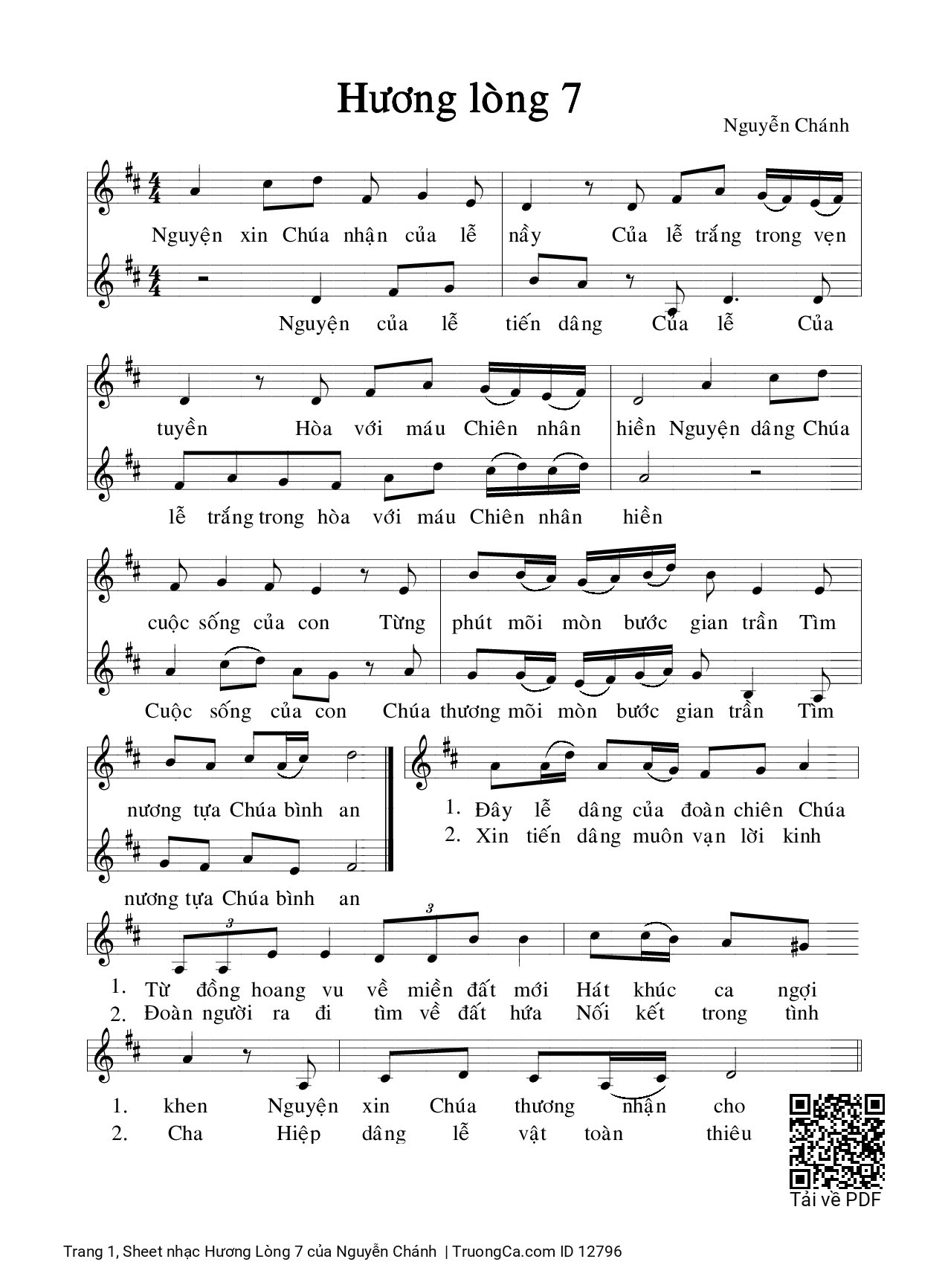Điệp khúc. Nguyện xin Chúa nhận của lễ này. Của lễ trắng trong vẹn tuyền. Hòa với máu Chiên nhân hiền. Nguyện dâng Chúa cuộc sống của con. Từng phút mỏi mòn bước gian trần. Tìm nương tựa Chúa bình an.